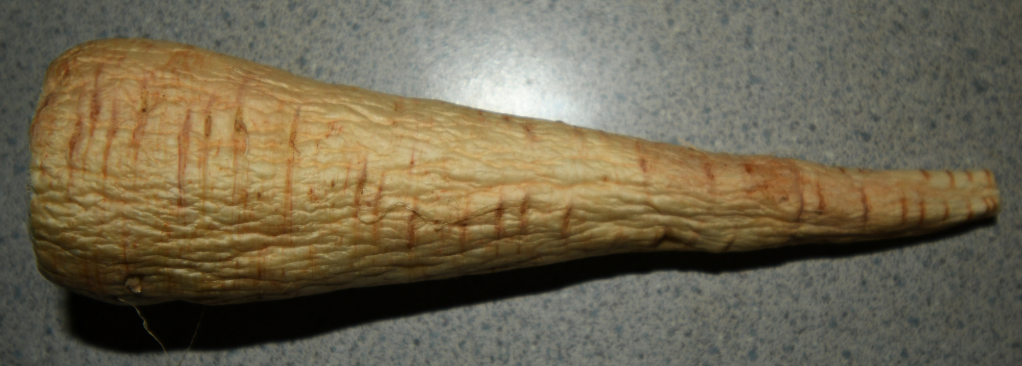 My afternoon snack. I did not want to use a stock photo, I took that picture just before slicing it up and making small pieces to boil then mash for my early evening snack. A stock photo would have looked much nicer I am sure, but that is the only picture of that parsnip. No one else can take a picture of it, it is gone, it was good.