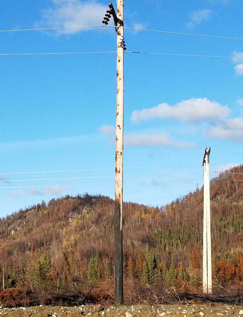 I did get a couple of pictures while stopped for a short time. The first stop I was able to use my smart phone and got this shot of a half burned telephone pole: