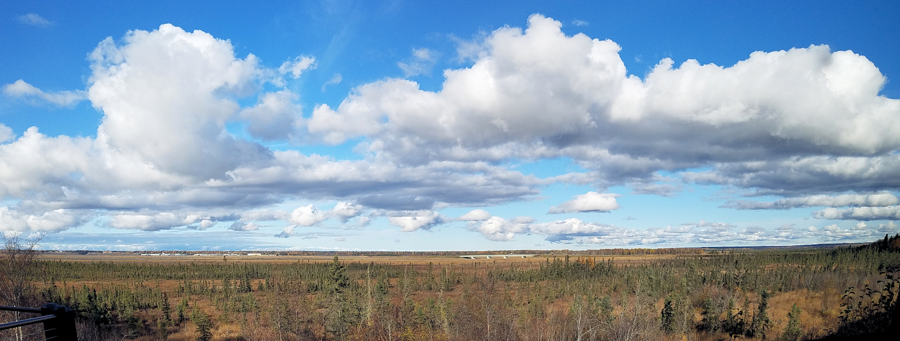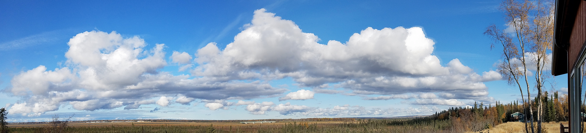 During the summer and warmer days there is a deck you can sit out in and enjoy the views glass free. Of course that means dealing with bugs. It was a nice cloud day over the Kenai Flats Wetlands.