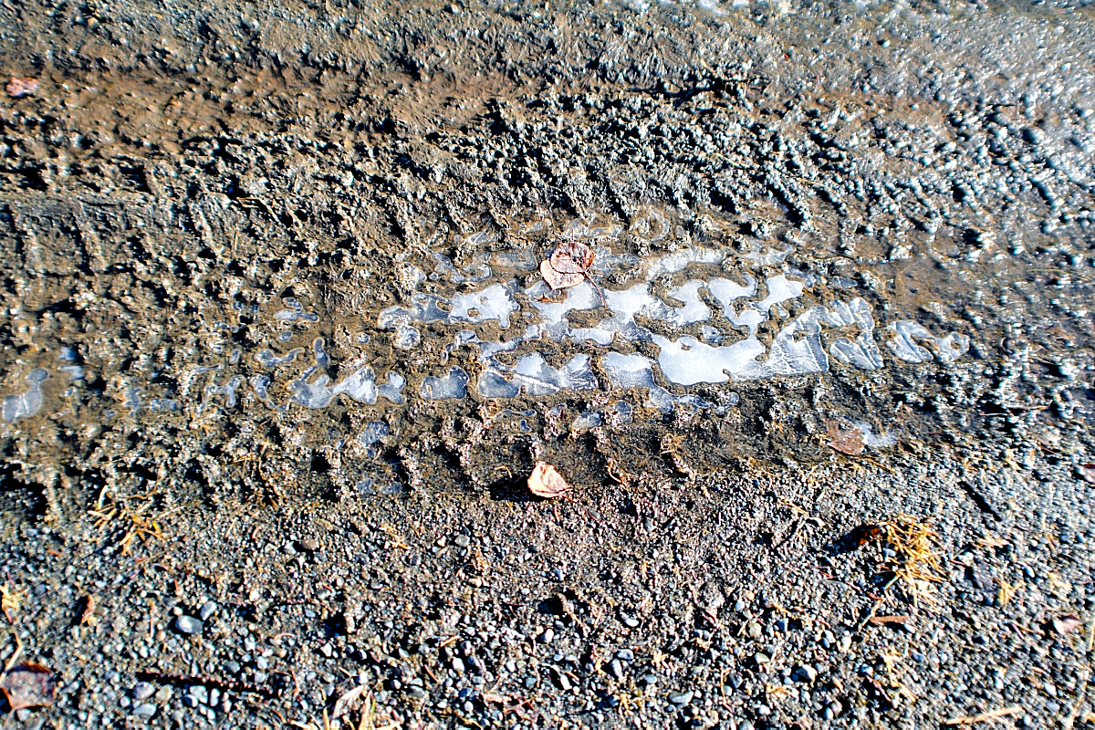 Frozen tire track, with frozen mud, and later in the day it will just be mud, along with the slipping and sliding part of the year it is also the muddy part of the year. The gravel and dirt roads are somewhat fun to drive right now if you like playing in the mud, but some of the ruts can be quite deep.