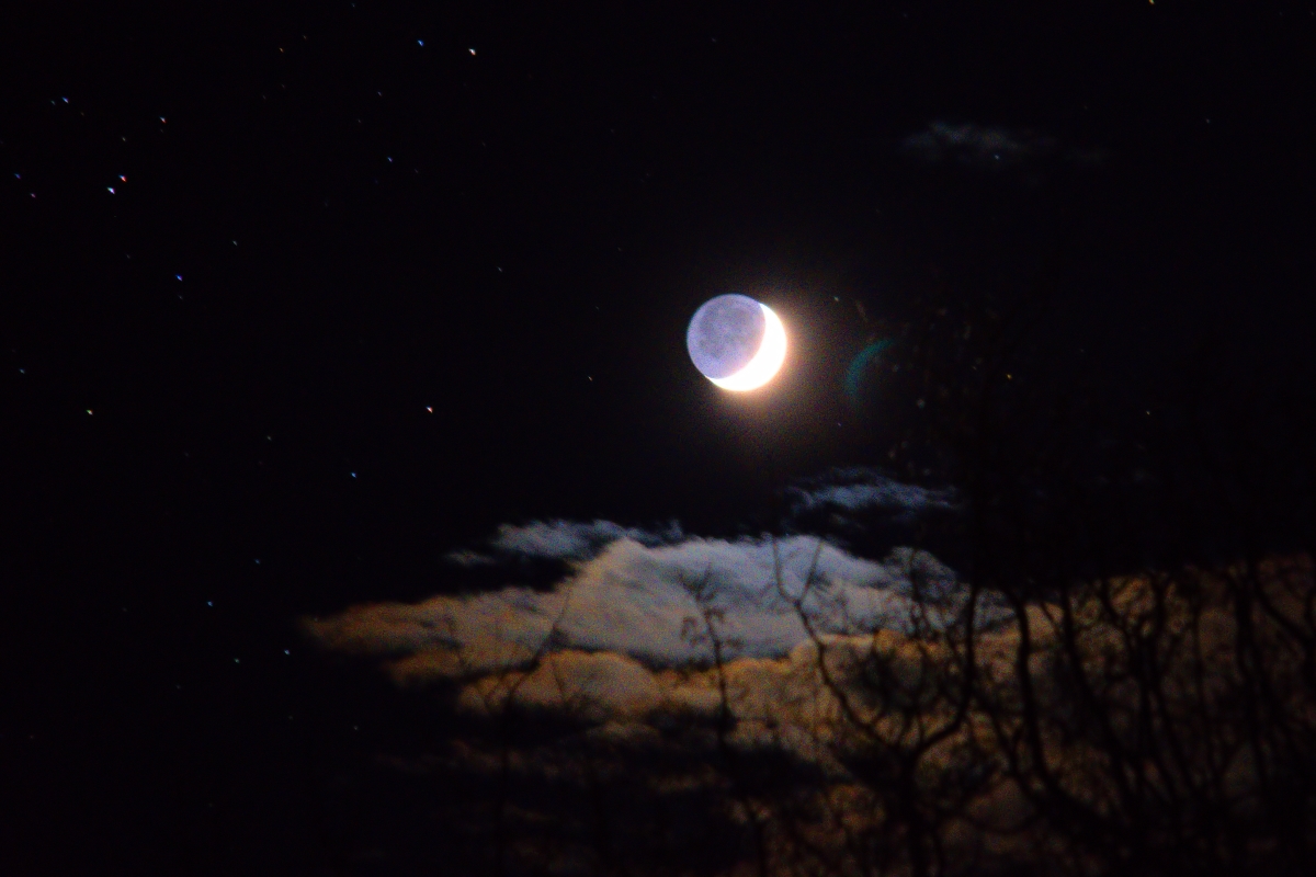 This was pretty much only fixed in Corel, and it started out as Nef/Raw file. I finally remembered to turn that function on in my camera. The camera JPG file was not as bright or easy to manipulate as this was, so I may do some more Nef/Raw photo edit playing while I learn. I do like the way I was able to bring the cloud glow out in the Nef/Raw image, I think it looks pretty good except for the strong crescent white I just could not mute that down any with any settings I tried, so next try I need to remember and to try and take some underexposed pictures and see if that will help. I am waiting on a nice night to try a full on stars only shot with no moon.
