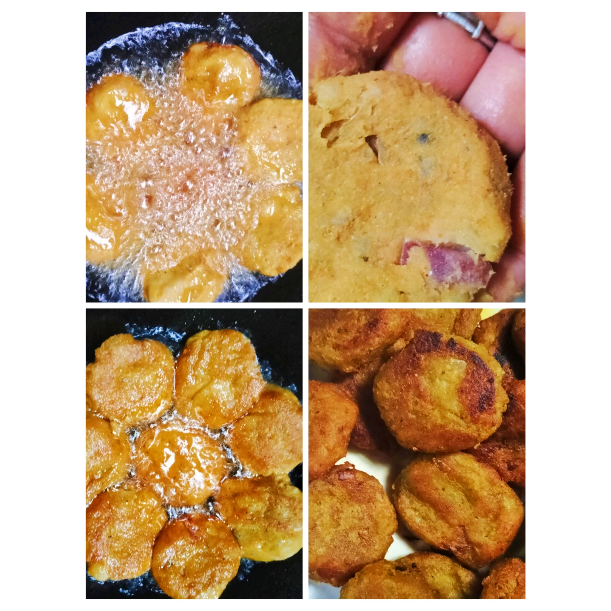 এখন আমি চুলায় কড়াই বসিয়েছি এবং তেল দিয়েছি, তেল গরম হয়ে গেলে একে একে আগে থেকে তৈরী করে রাখা কাঁচ কলার বড়া গুলো দিয়েছি ও খুব ভালো করে ভেজে নিয়েছি।