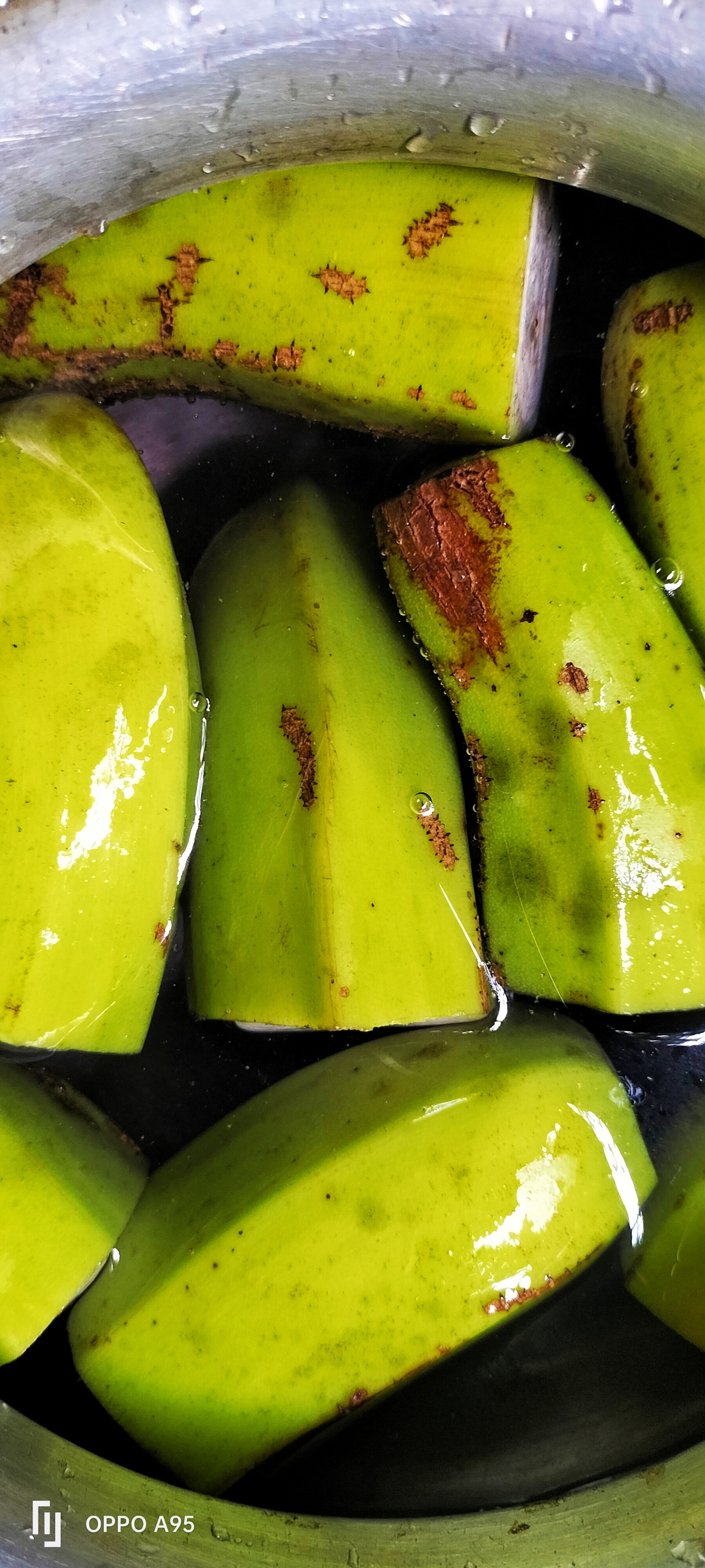 প্রথমে আমি কাঁচ কলা গুলো সিদ্ধ কেটে নিয়েছি ও একটি পাতিলে জল দিয়ে সিদ্ধ করতে দিয়েছি।
