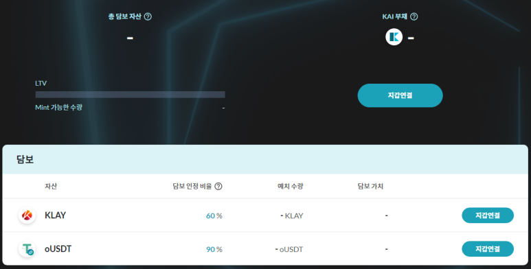 클레이 또는 테더를 담보로 설정하여 카이 토큰을 민트할 수 있습니다.
