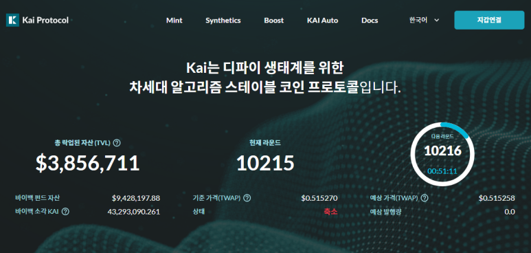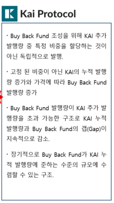 카이프로토콜의 바이백 펀드 구조는 장기적으로 카이 토큰의 발행량에 수렴한다고 합니다.