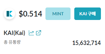 현재 카이 토큰의 가치는 0.515 달러입니다.