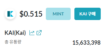 현재 카이 토큰의 총 유통량은 15,632,714개인데요.