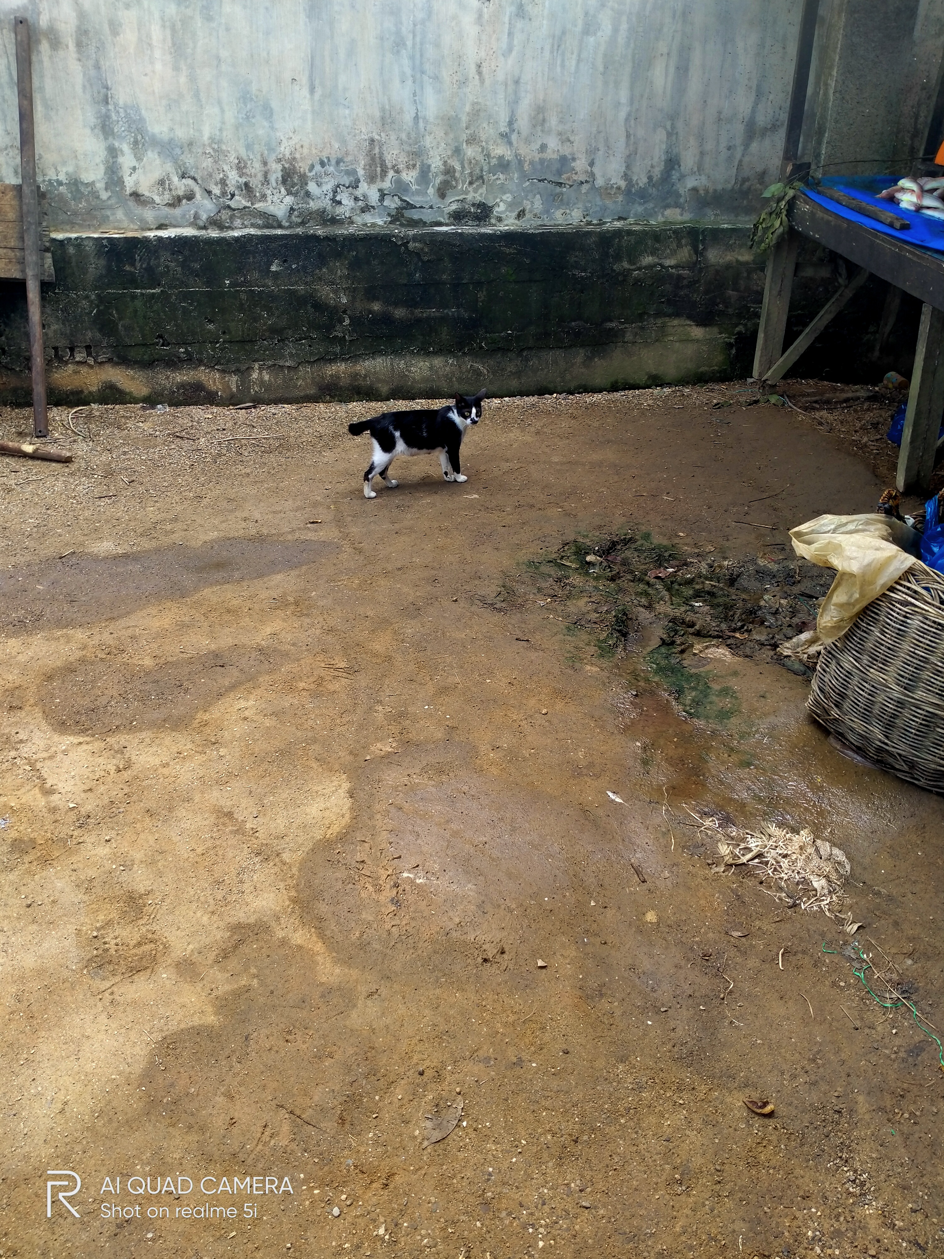 Kucing jalanan masuk ke rumah.
