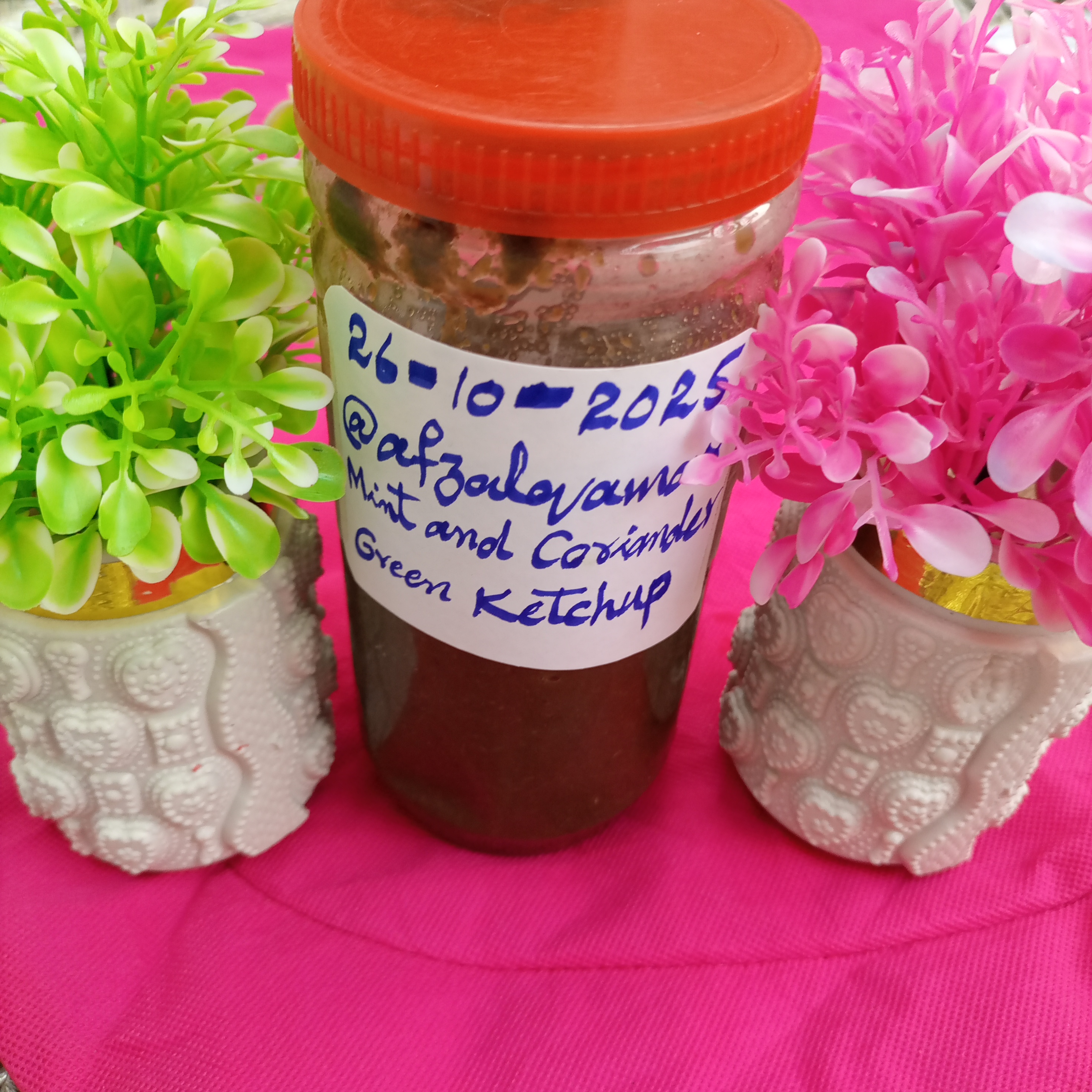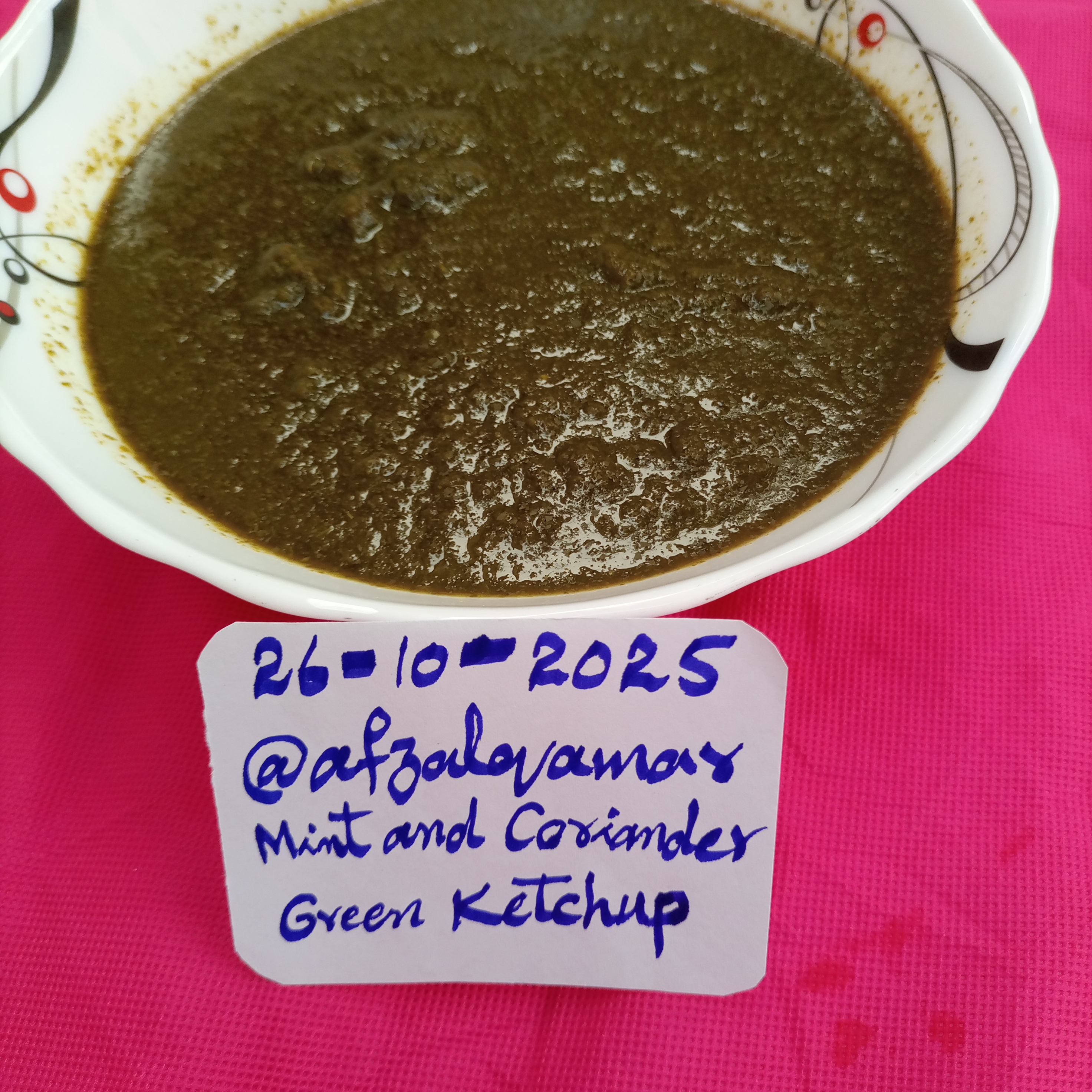 Use the title: Homemade Green Ketchup with Mint and Coriander