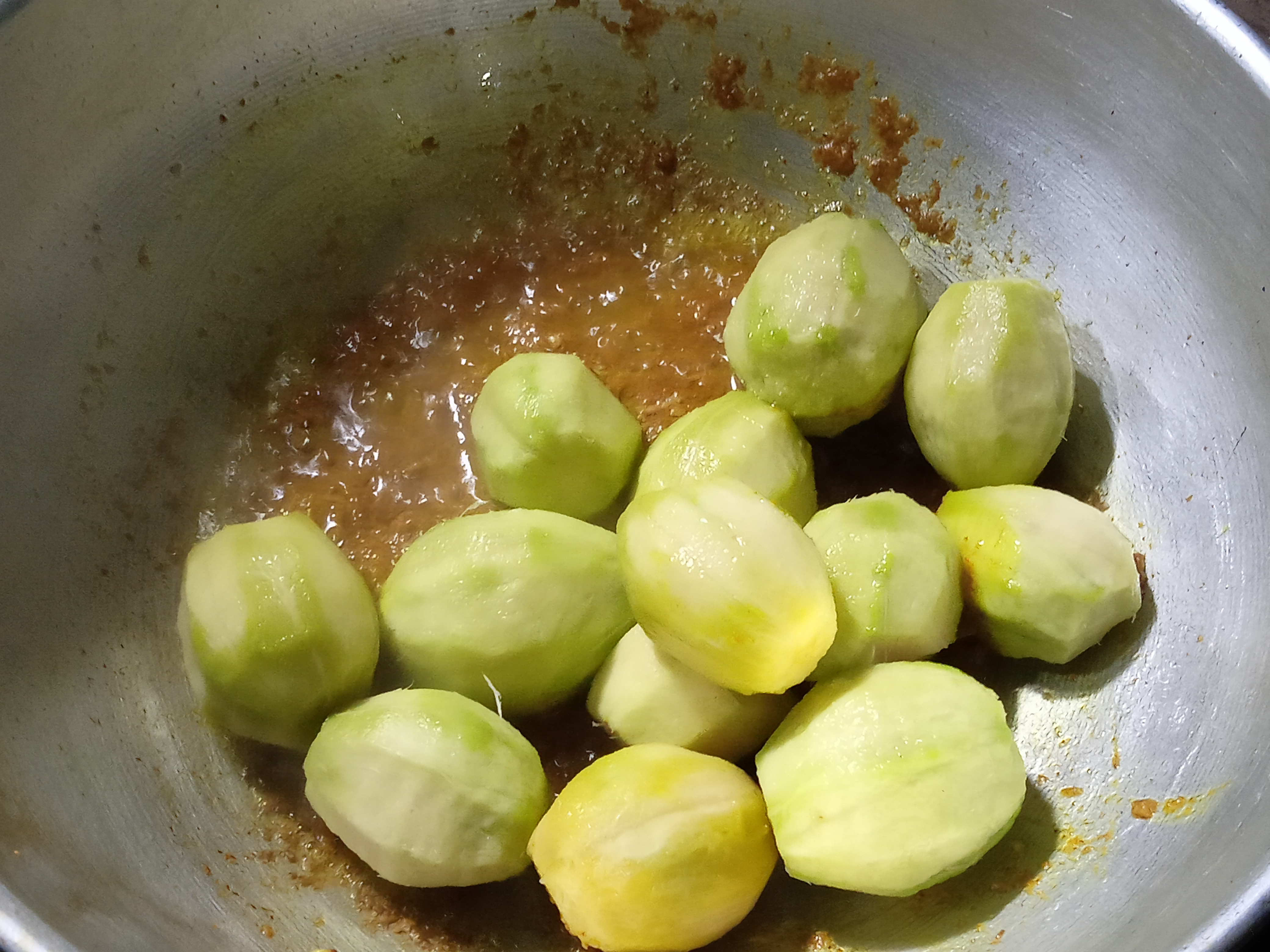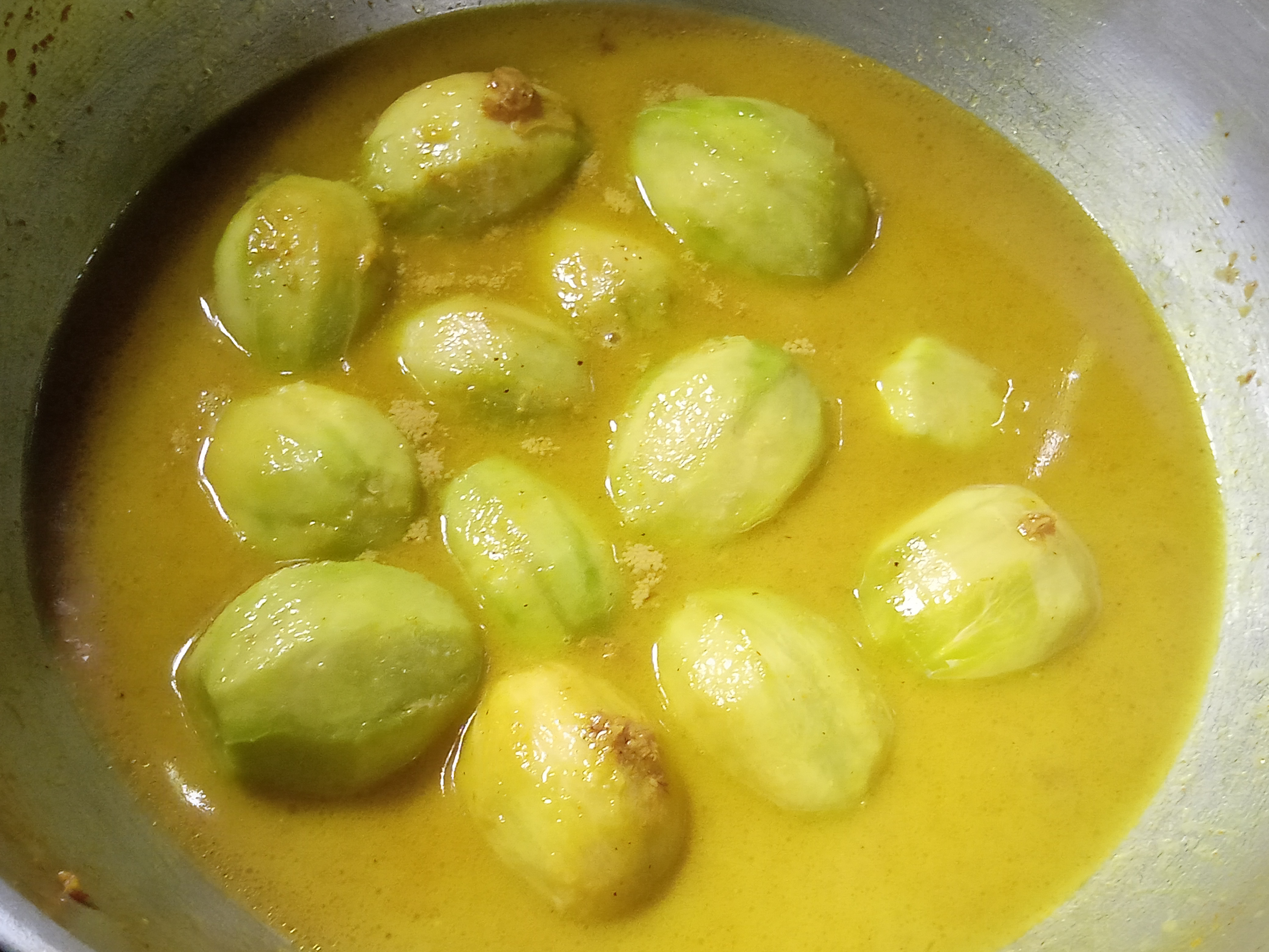 এই রান্নায় তেলের পরিমান একটু কম দিতে হয়। কারণ নারিকেল দুধ ব্যবহারের ফলে রান্না হয়ে গেলে এমনিতেই তেল ছেড়ে আসে।