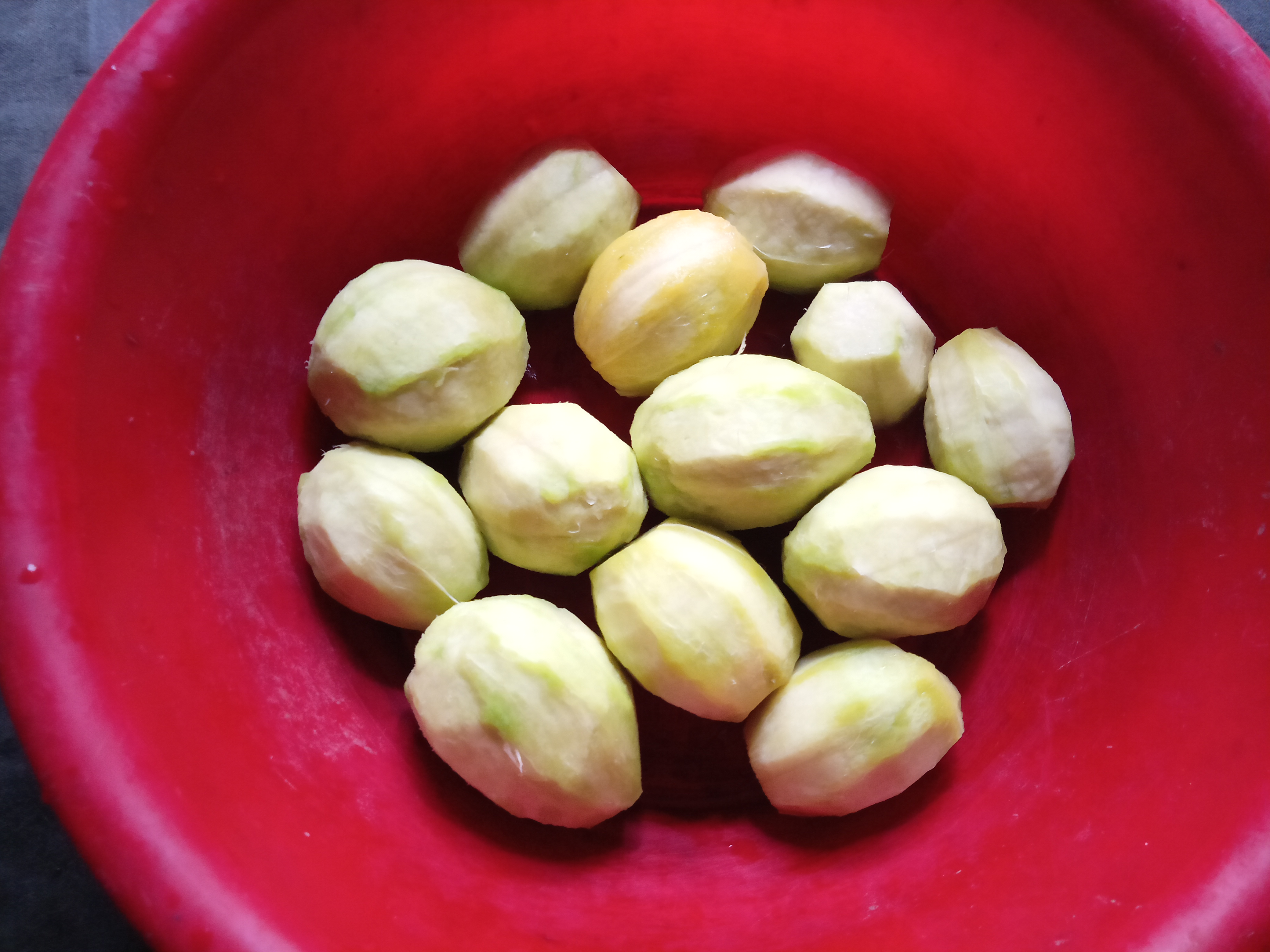 প্রথমে আমড়াগুলোর খোসা ছাড়িয়ে পানি দিয়ে সিদ্ধ করে নিতে হবে।তারপর পানি ঝরিয়ে ফেলতে হবে।