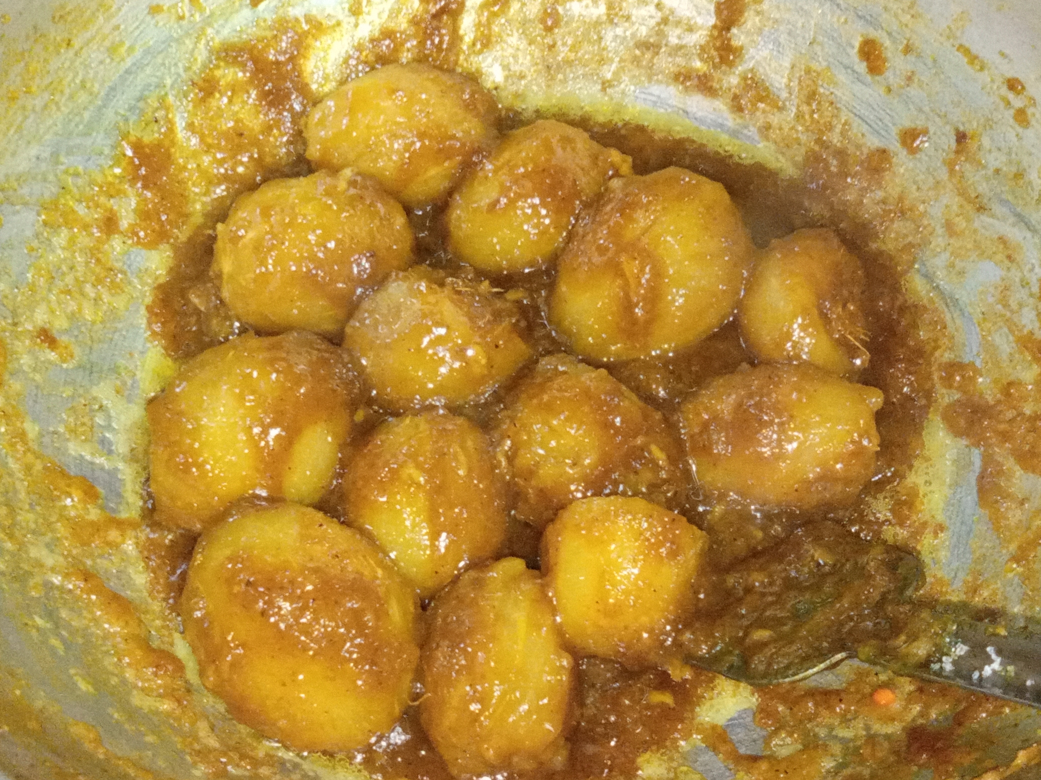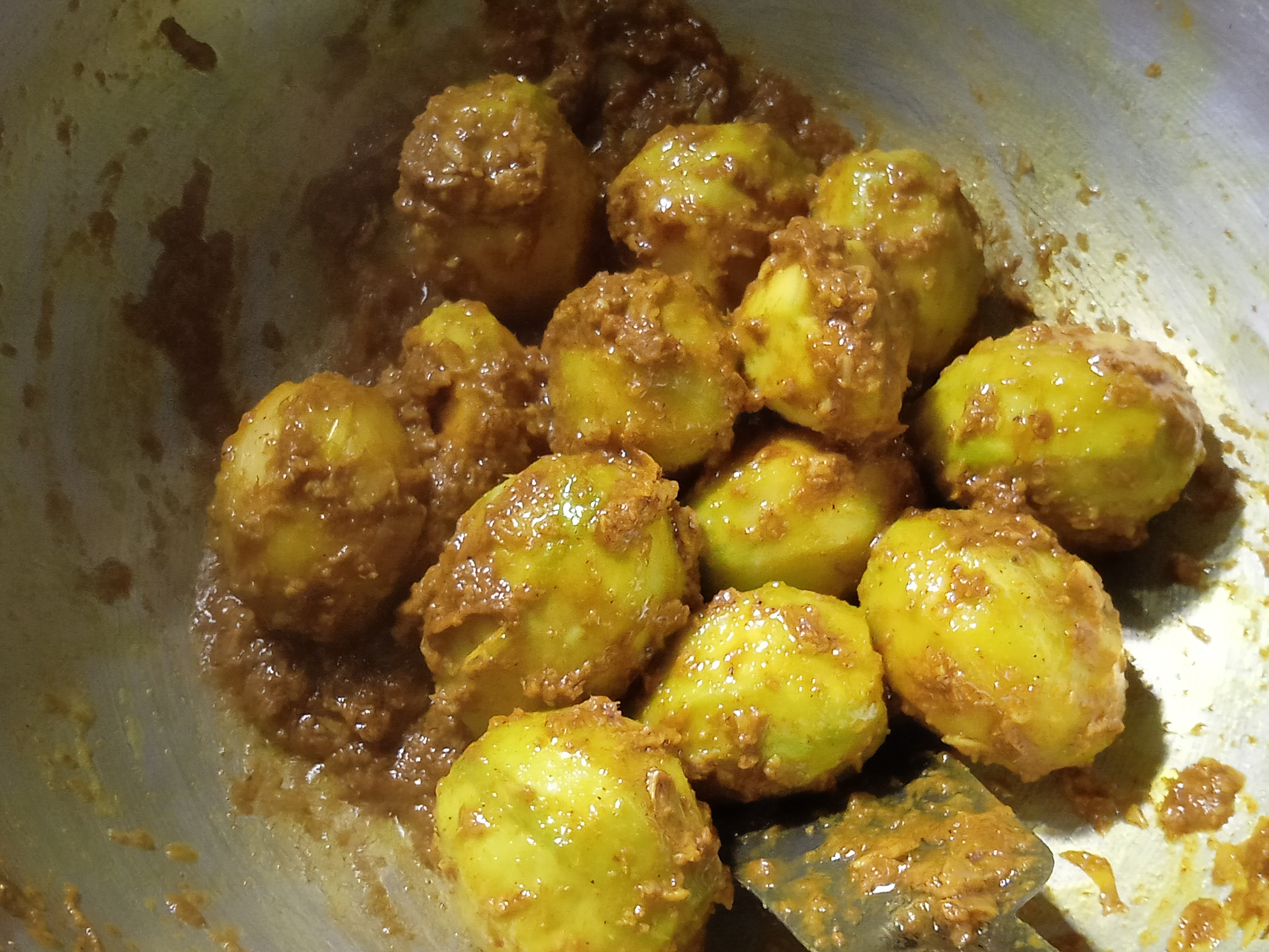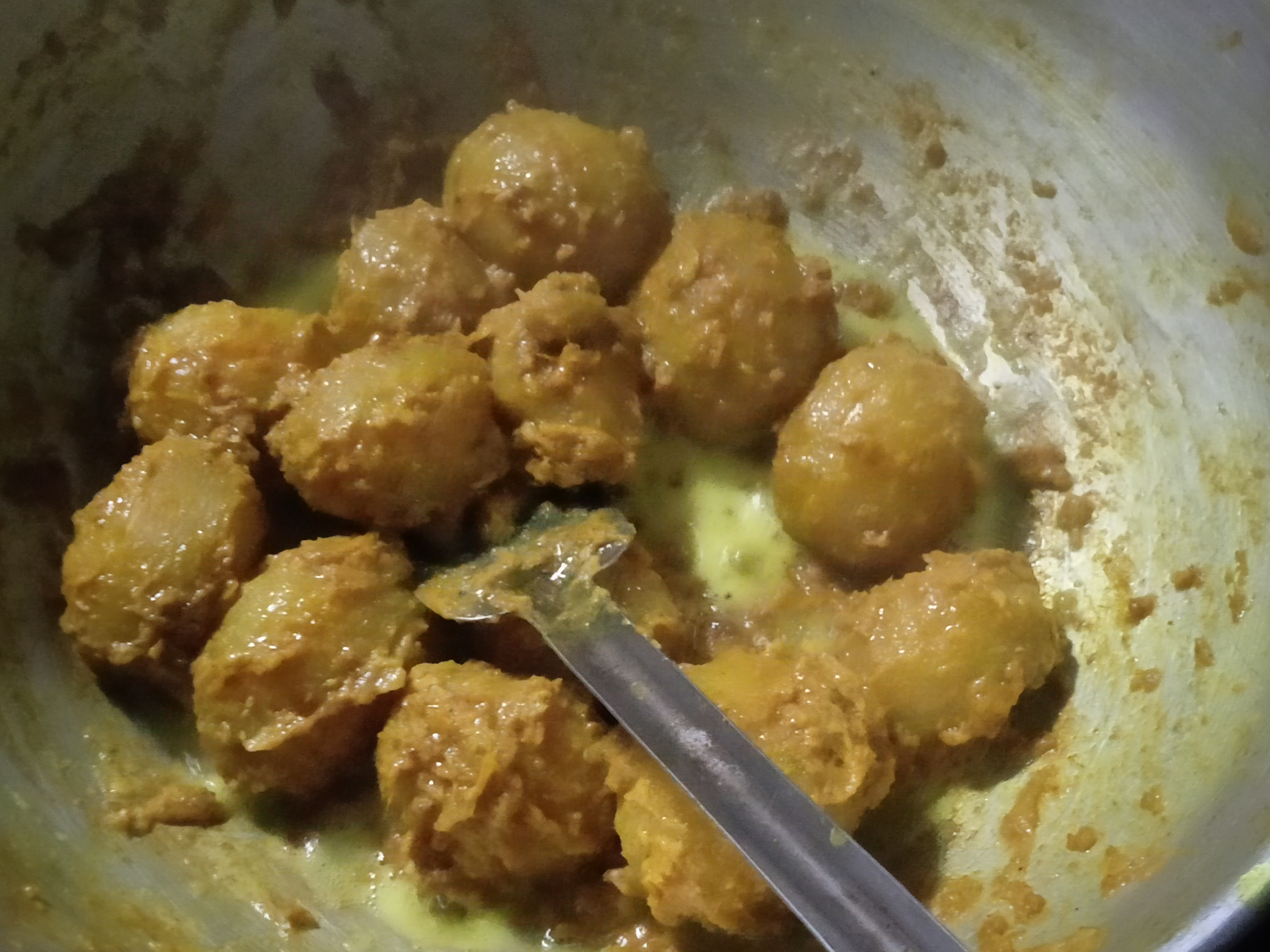 এরপর জাল করতে করতে যখন মাখা মাখা ঝোল হয়ে আসবে তখন বুঝতে হবে রান্না শেষ।