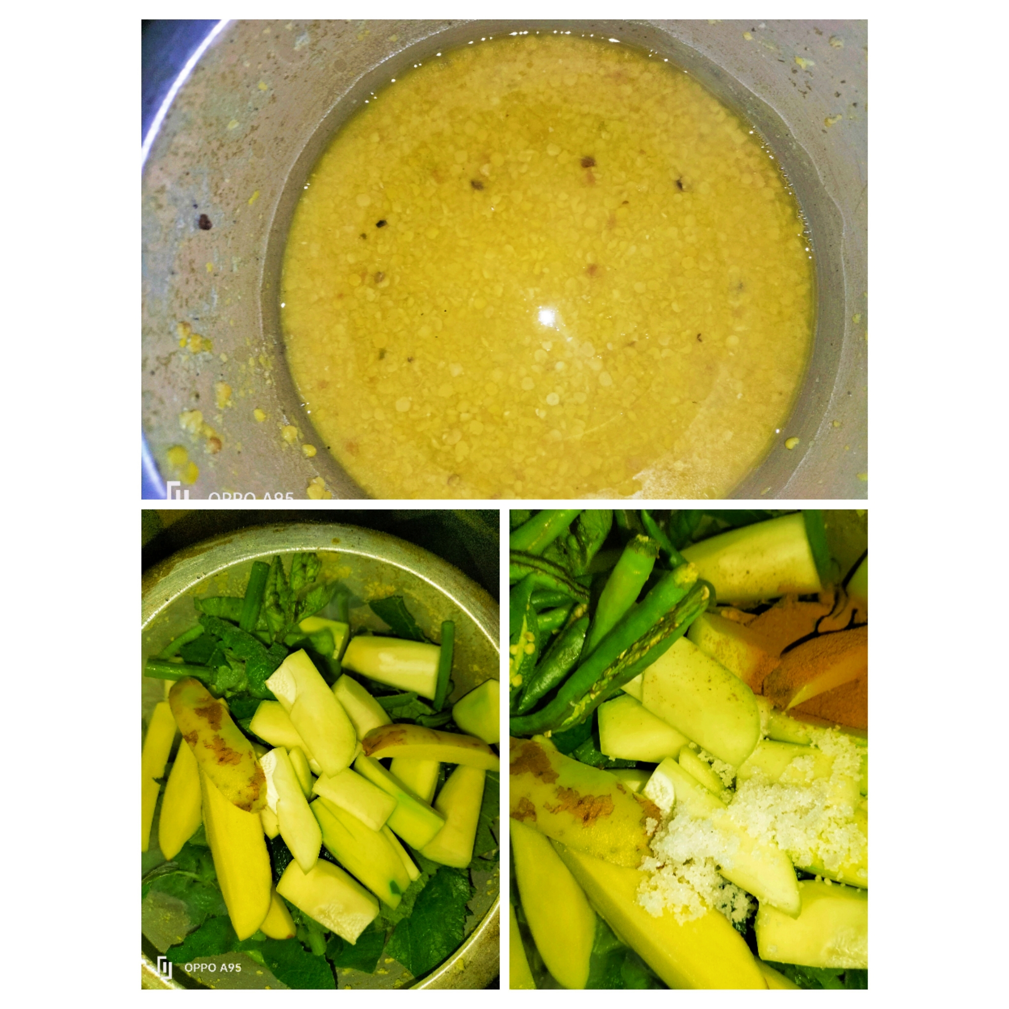এখন ডাল সিদ্ধ হয়ে গেলে সেই ডালে কেটে রাখা সবজি দিয়ে আবার প্রসারে ডালসহ সবজি গুলো সিদ্ধ করে নিয়েছি লবন হলুদ দিয়ে।