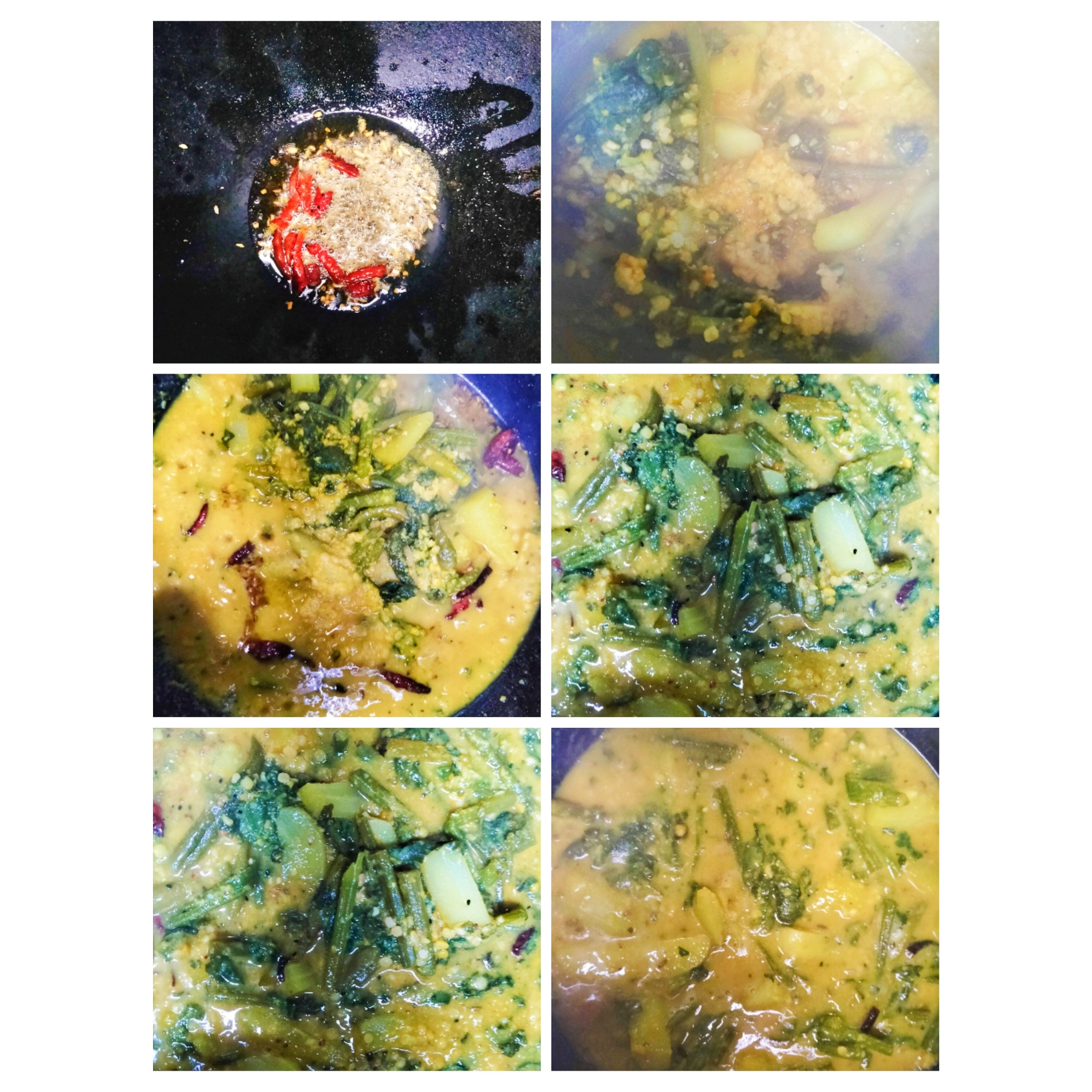 এখন ফোঁড়ন দেয়া তেলে আগে থেকে সিদ্ধ করা সবজিও ডাল গুলো দিয়েছি ও নারাচারা করে একটু সময় ফুটিয়ে নিয়েছি।