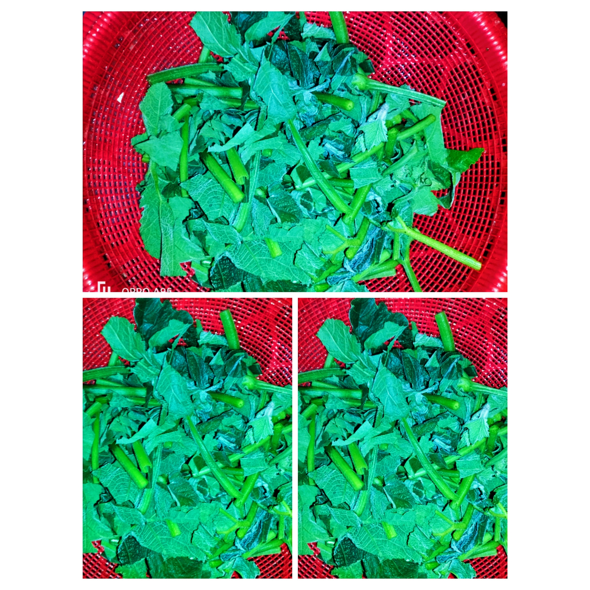 প্রথমে আমি মিষ্টি কুমড়োর ডগা কেটে নিয়েছি ও ধুয়ে পরিস্কার করে জল ঝড়িয়ে নিয়েছি।