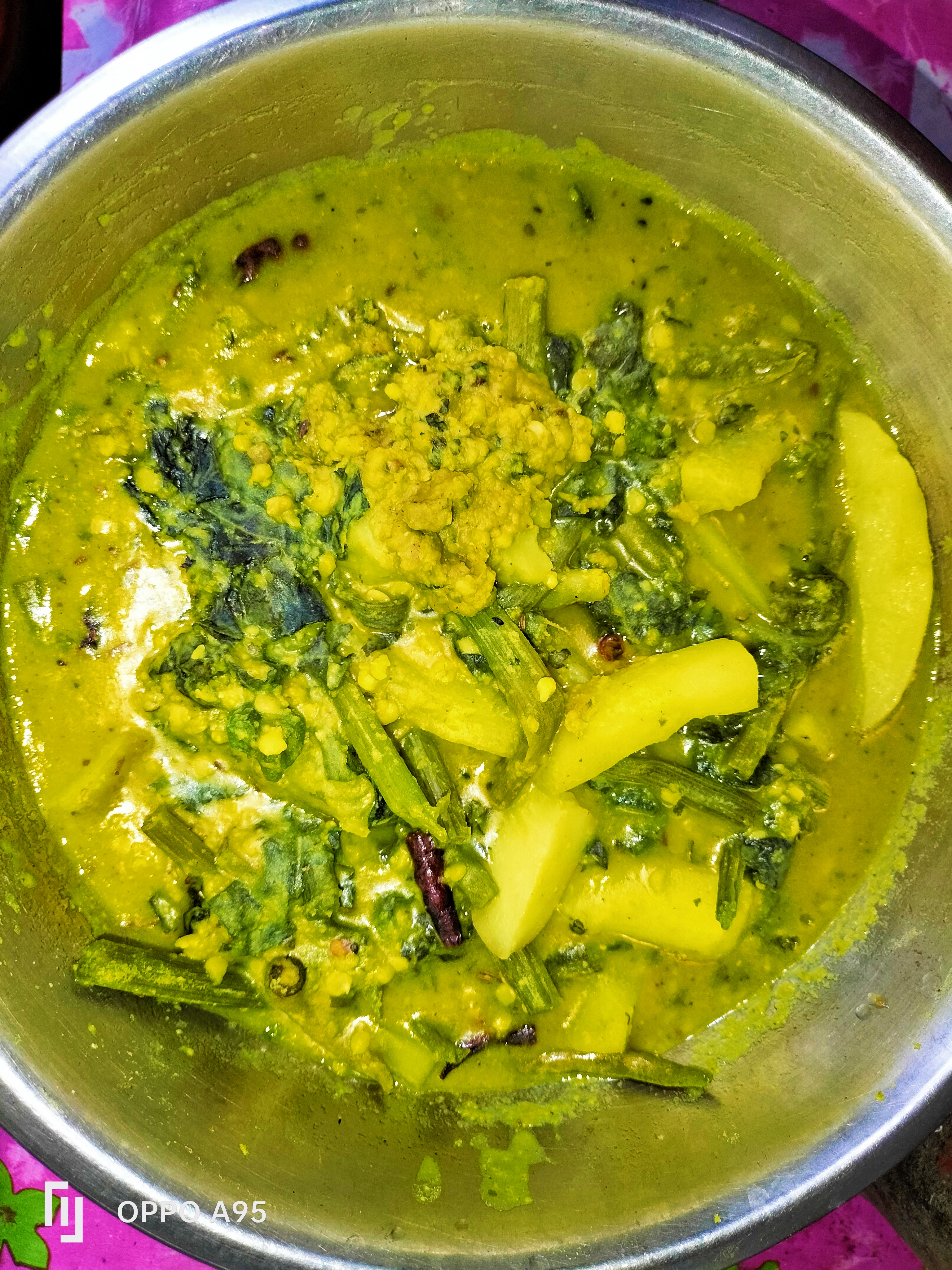 খেসারির ডাল দিয়ে মিষ্টি কুমড়োর আগা,পেঁপে ও আলু দিয়ে মজাদার রেসিপিটি হয়ে গেছে তাই পরিবেশনের জন্য নামিয়ে নিয়েছি।