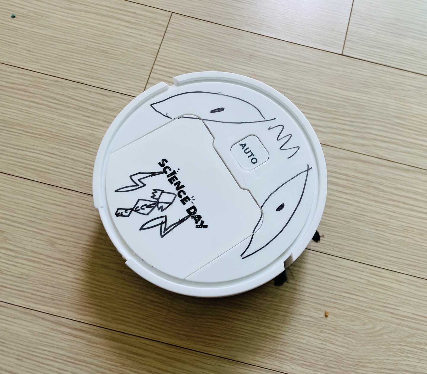 집에서 쓰던 로봇청소기를 충전하는 동안 첫째가 만든 로봇청소기로 아이들 놀이방 청소를 시켰는데