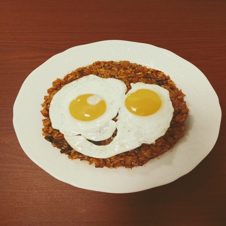 - 다 볶았으면 그릇에 담고 그 위에 계란 프라이를 얹어서 맛있게 먹으면 된다(김치볶음밥과 계란 프라이의 조합은 예술의 경지를 넘었다 ㅎㅎㅎㅎㅎ).
