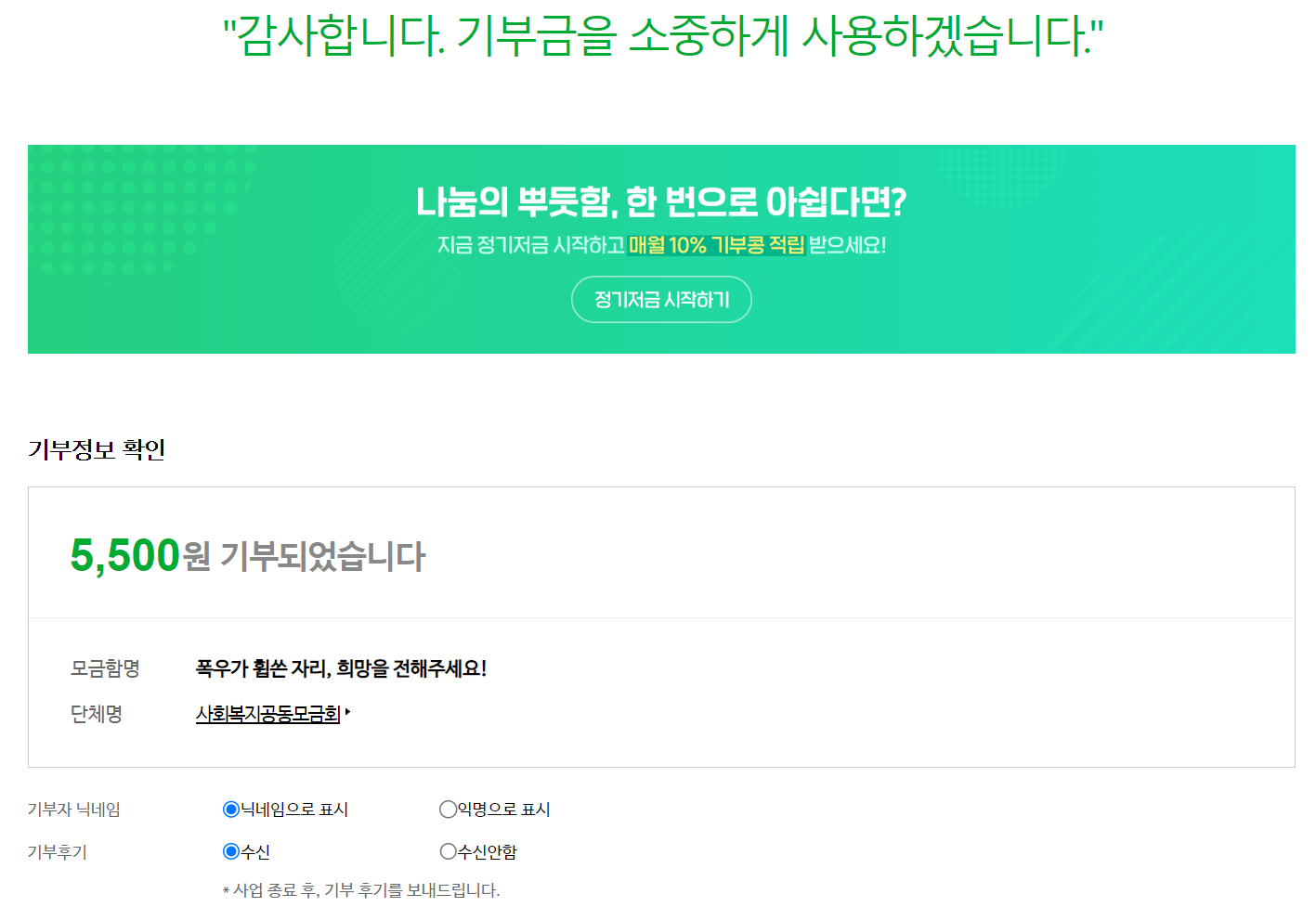 얼마 안되지만, 이번에 쌓인 금액으로 기부를 하였습니다.