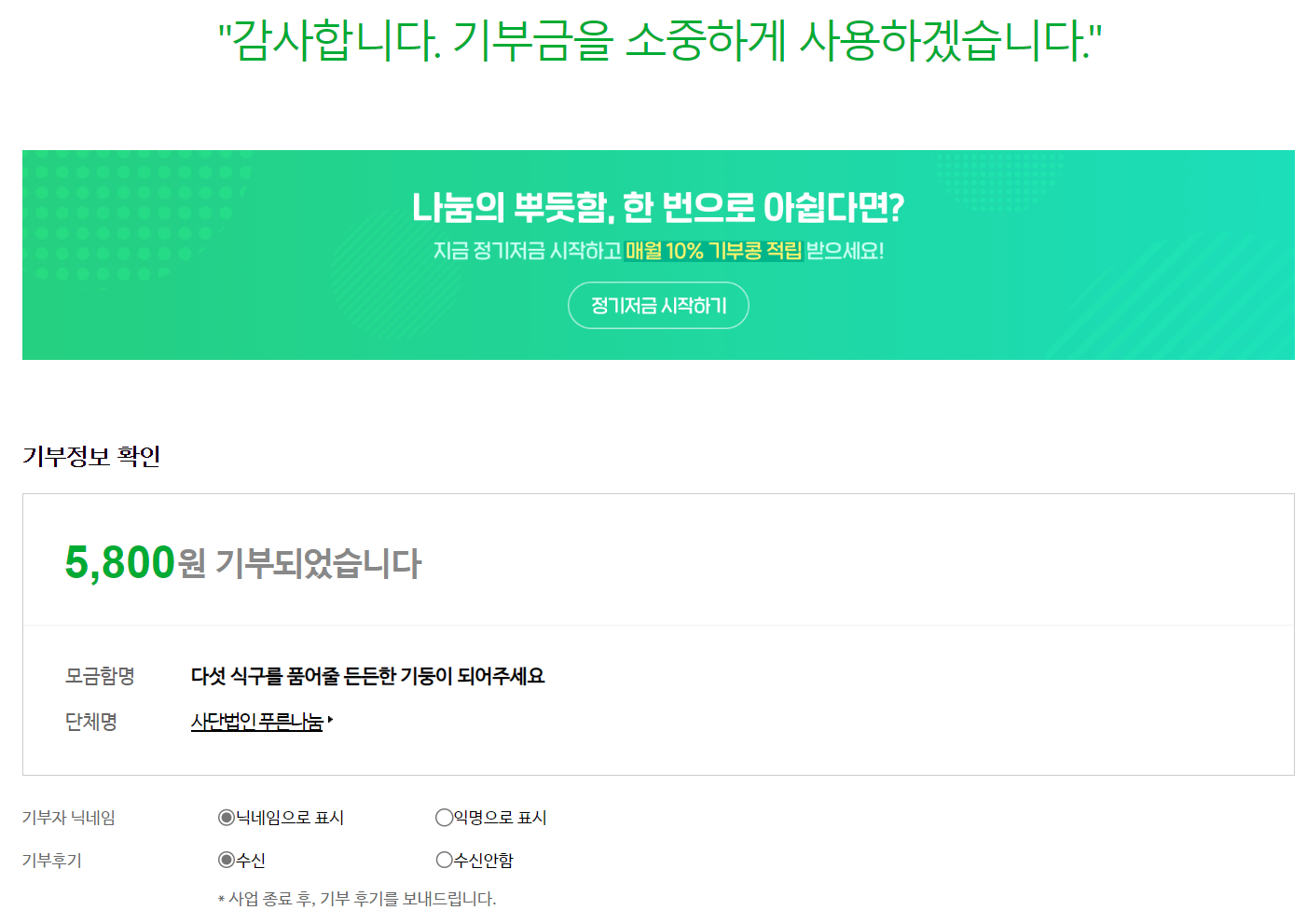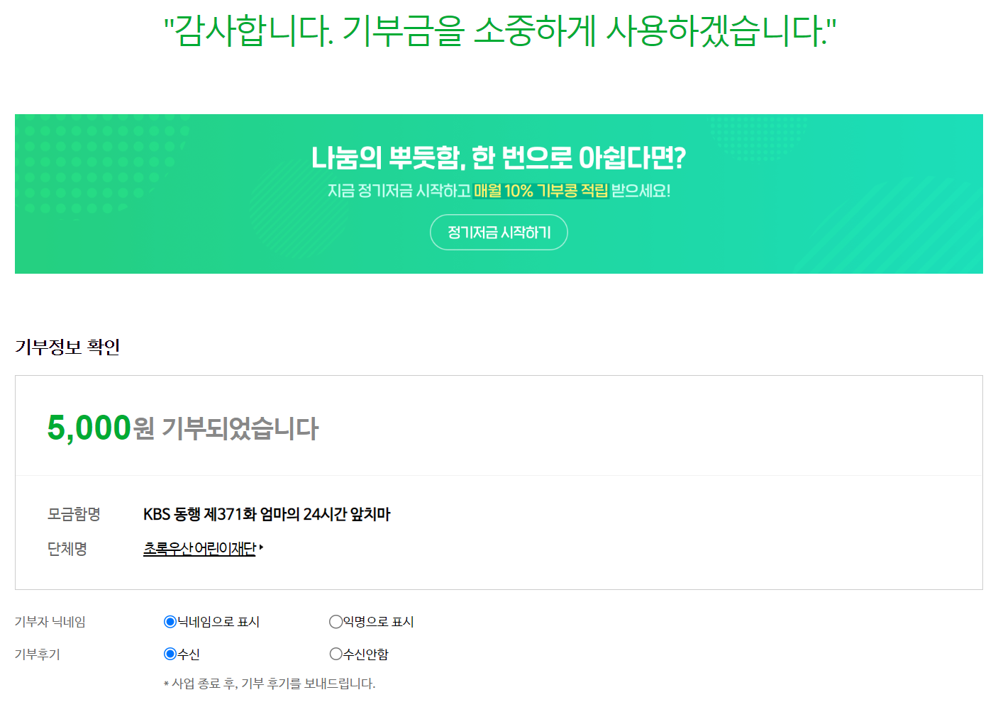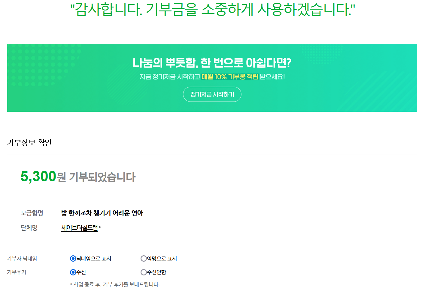 앞으로 경제적 자유를 얻게 되면 더 많은 금액을 기부하려고 합니다. ^^