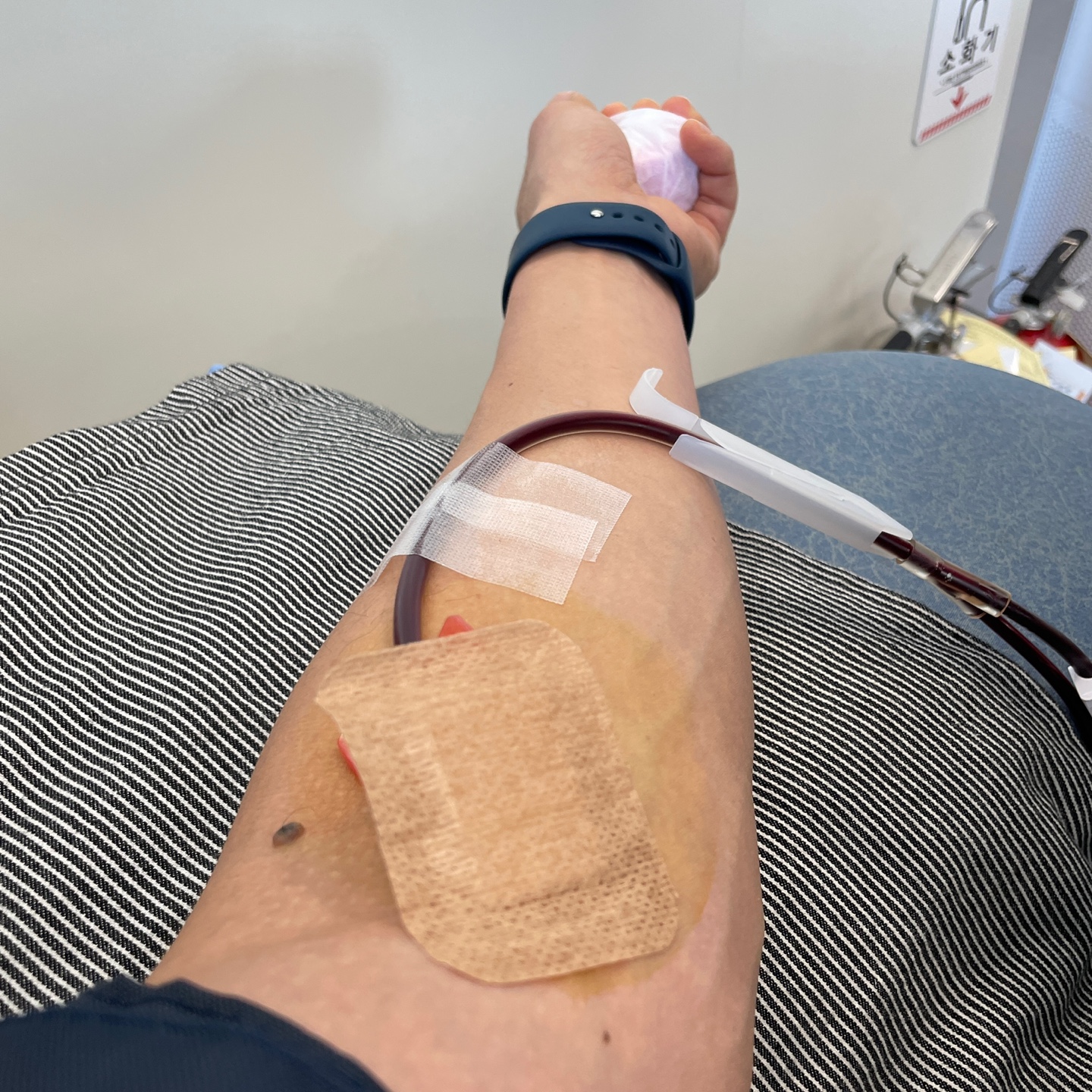 아내님은 철분 수치가 부족해 헌혈을 하지 못했다. 응?!! 반면 나는 1시간 반 동안 편하게 누워 책을 읽으면서 헌혈 했다. 다행히 피는 잘 나왔으나 혈소판혈장은 워낙 시간이 많이 걸리는 헌혈이라 약간 팔이 저렸을 뿐이다. 헌혈 하는 동안 둘째는 내가 걱정된 건지 아니면 단순한 호기심인지 내 주위를 기웃 거렸다. 아이를 옆으로 불러 조용히 설명해 주었다. 바늘을 통해 들어간 피는 기계를 통해 혈소판과 혈장으로 분리해서 팩에 저장하고 나머지 적혈구는 다른 용액과 함께 다시 몸으로 돌아온다, 방금 몸에서 빠져나온 혈소판은 따뜻하다고 만져 보라고 하니 혈액팩 위로 조심스레 손을 올려 보았다. 정말 따뜻하다며 신기해 했다. 이런 게 뽑은 혈액이 누군가에게 도움이 된다는 사실을 아이가 이해했으면 좋겠다. 반면 첫째는 내가 헌혈을 하던 말던 신경도 쓰지 않고 독서 삼매경에 빠져있었다(다시 한 번 인정 없는 녀석!).