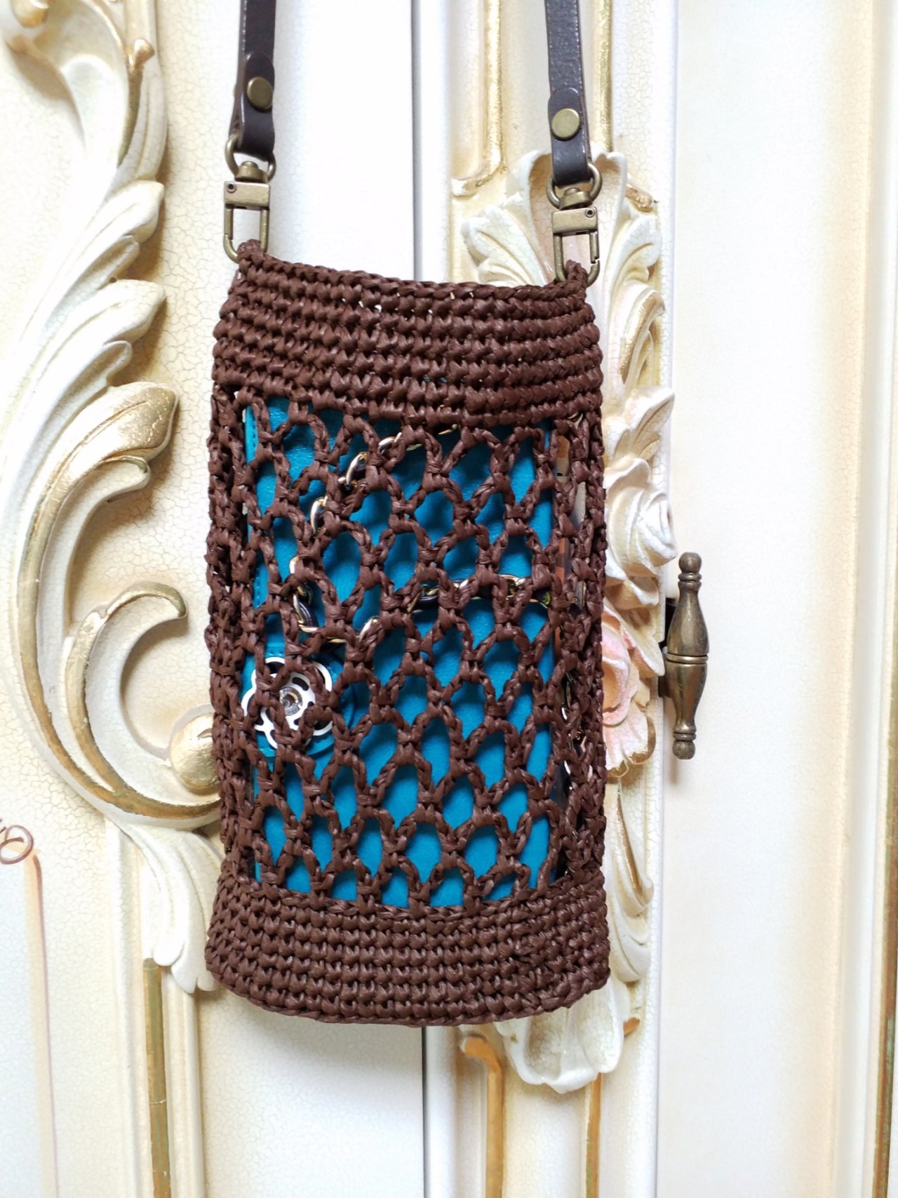큰 아이 가방뜨고 남은 실로 만든 스마트폰용 크로스백.