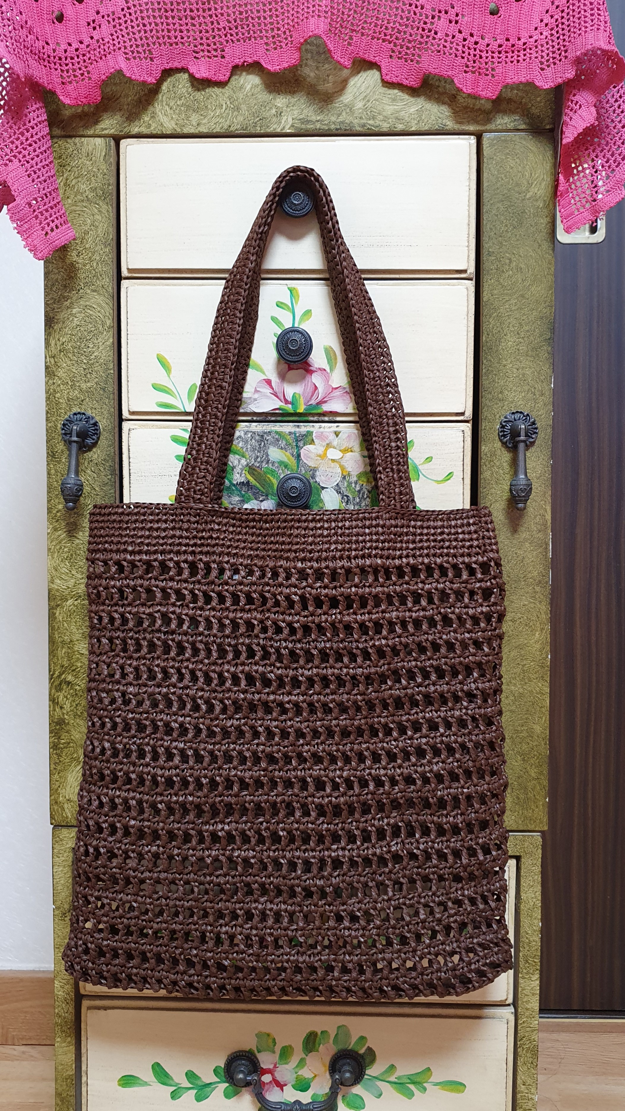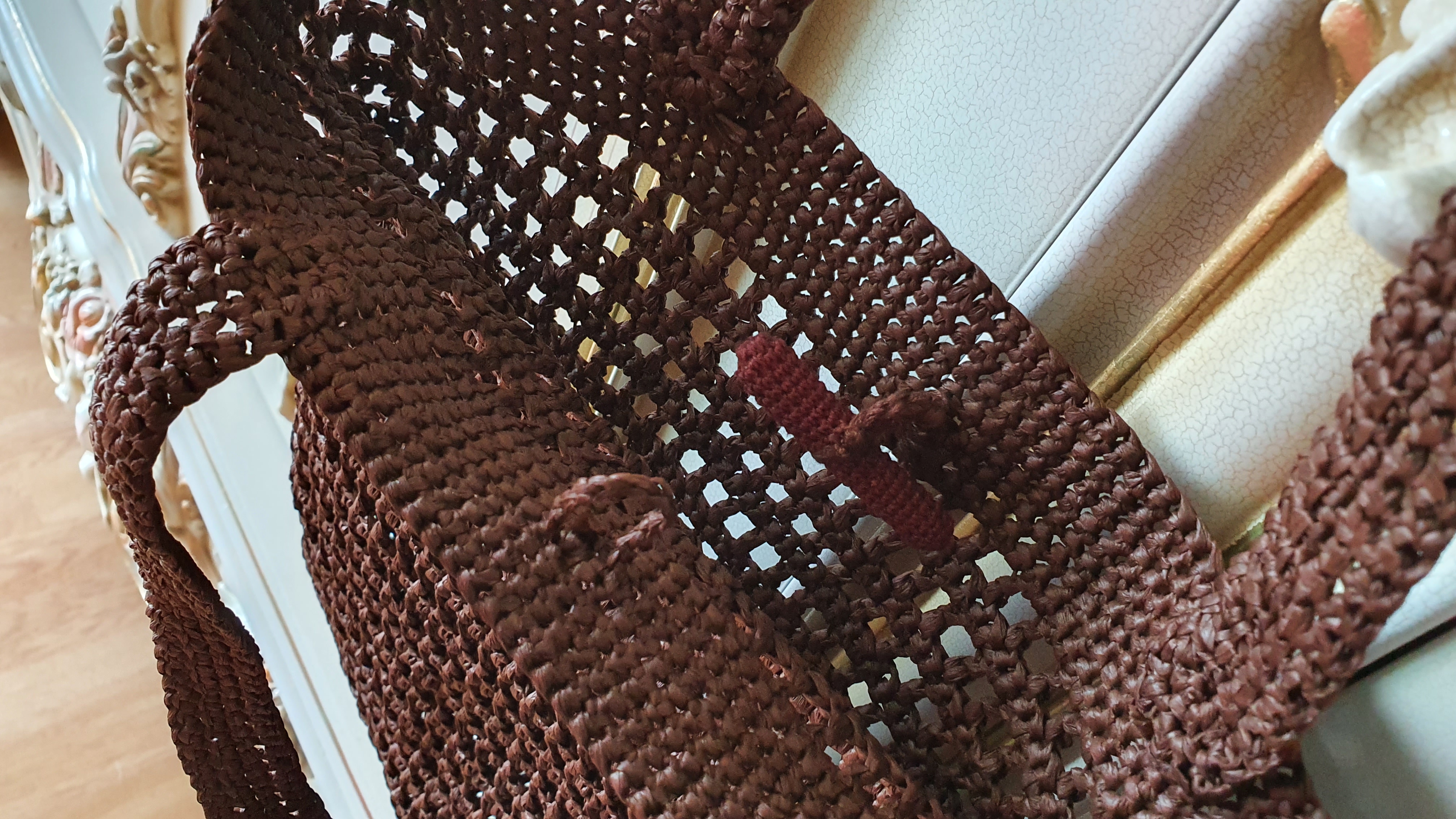 큰 애에게 만들어 보내준 네트백. 종이실이라 하는 루피실로 떴는데 촉감이 다소 거칠고 가볍다.