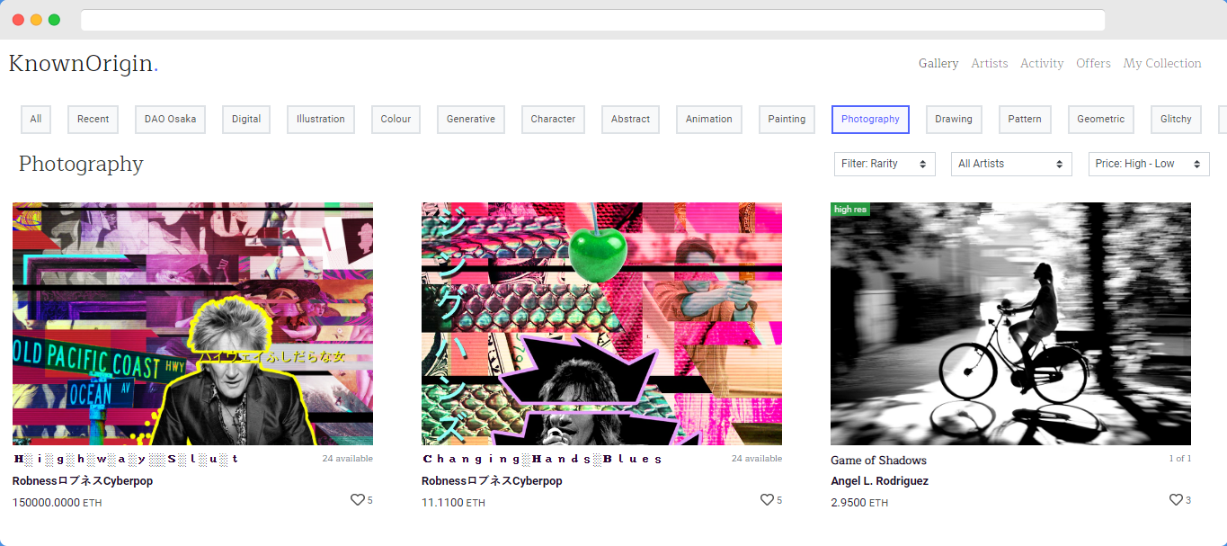 There's really not much difference in the quality between artworks on Shutterstock and KnownOrigin, I'd say the only difference is that Shutterstock gets more traffic because they're currently a bigger brand. Despite being relatively unpopular when compared to Shutterstock that pays users about 39cents for each time their image gets downloaded, KnownOrigin has been able to raise over $30,000(at the current exchange rate of ETH) for various artists across the world.