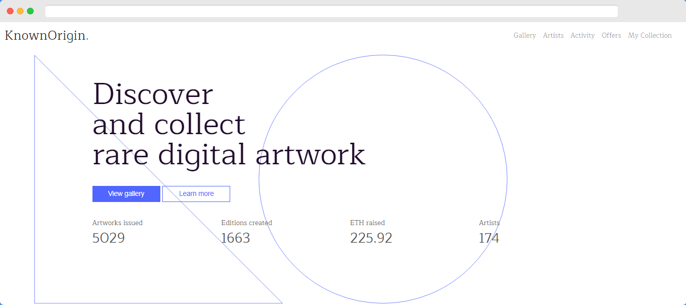 Pablo Picasso once said that the artist is a receptacle for emotions that comes from all over the place: from the sky, from the earth, from a scrap of paper, from a passing shape, from a spider's web. For art to be appreciated, it needs a platform where these emotions can be reflected and grace the society with its brilliance. KnownOrigin is a decentralized market place for artists and art curators built on Ethereum Network and employs the cutting edge technology behind similar marketplace dapps like District0x and Ethlance found on Stateofthedapps.