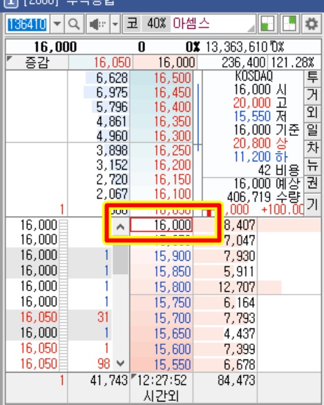 장이 시작하자마자 시초가는 역시 공모가의 200%인 16,000원에 시작을 하였다.