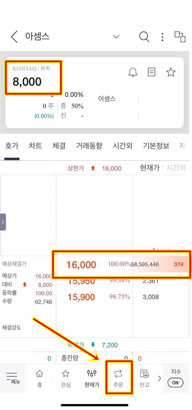 상한가가 아닌 원하는 가격이 있으면 가격수정을 하고 대기하면 된다.