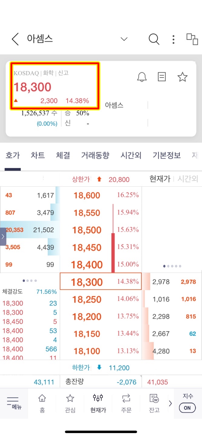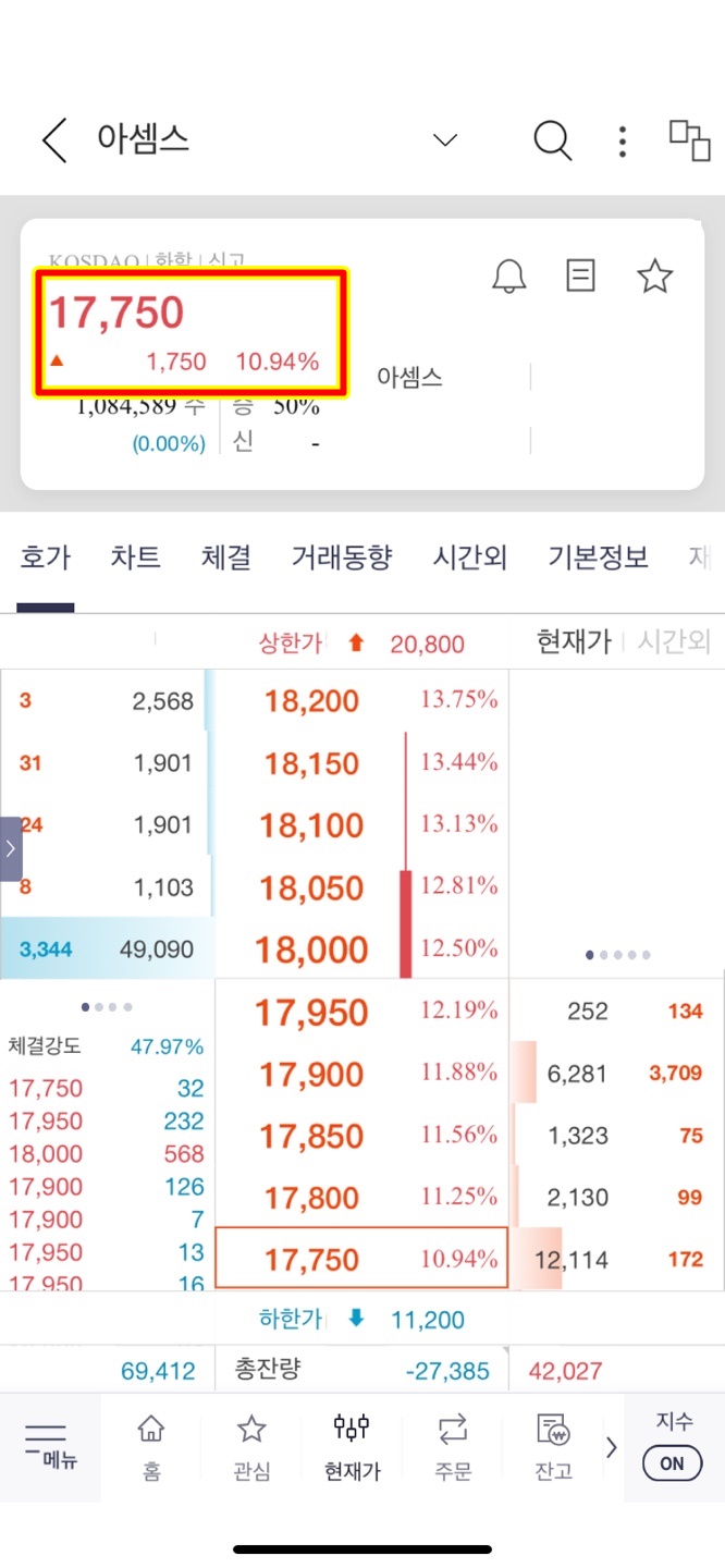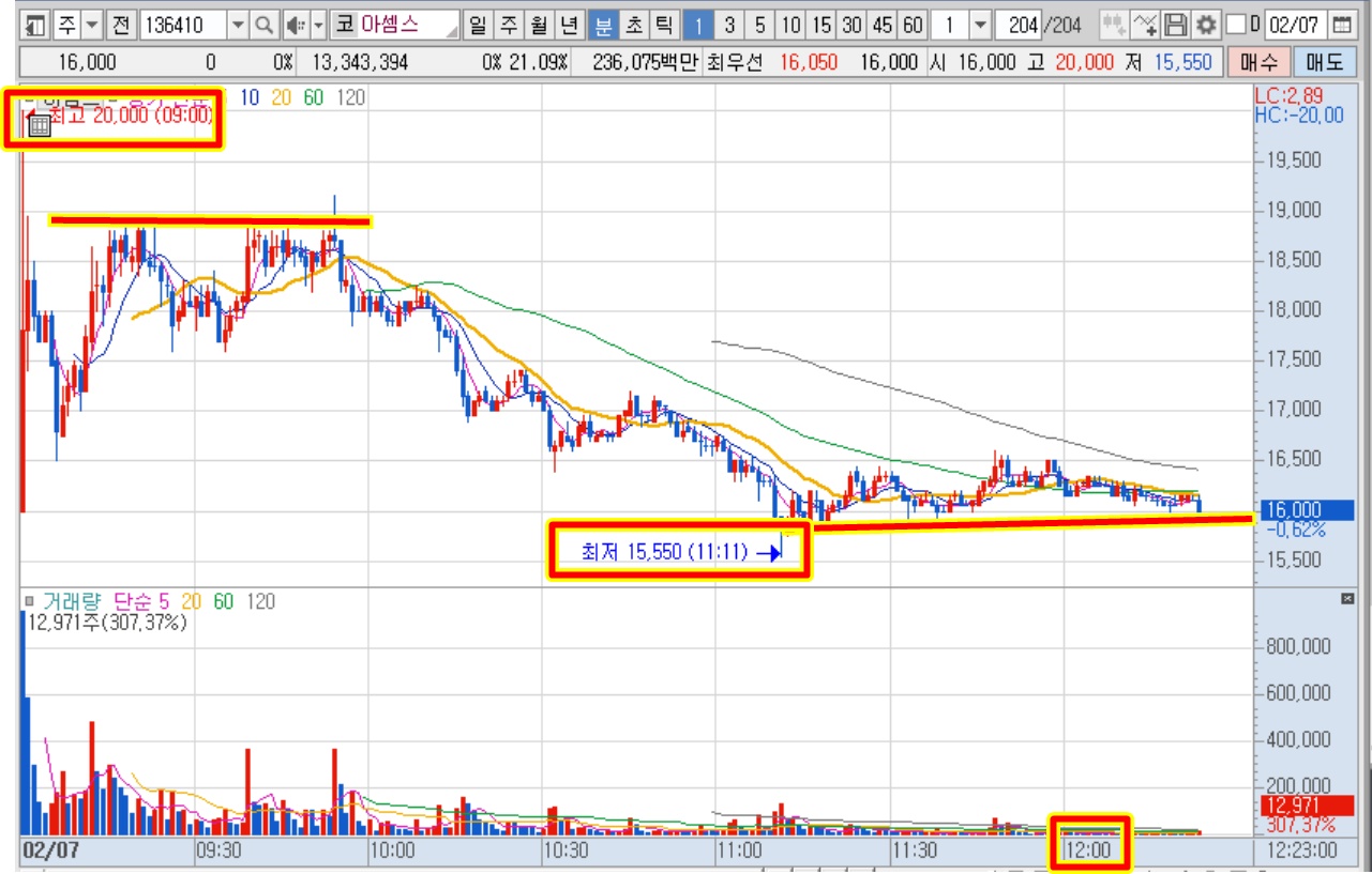 현재 12시 28분 아셈스는 시초가 가격에 있다.ㅜㅜ