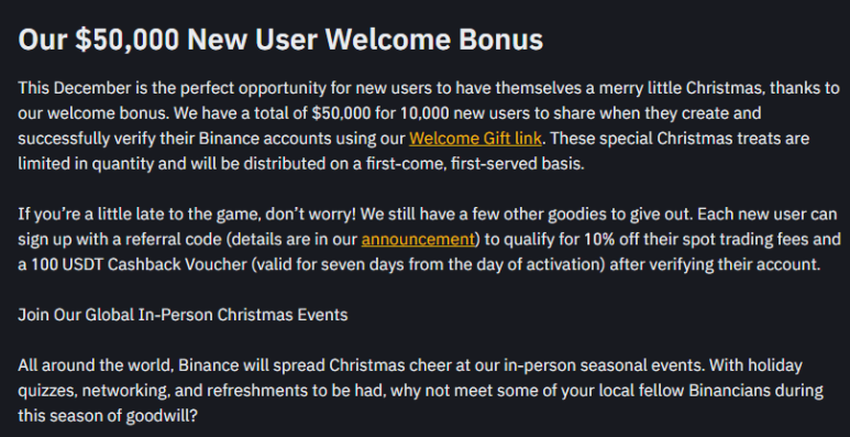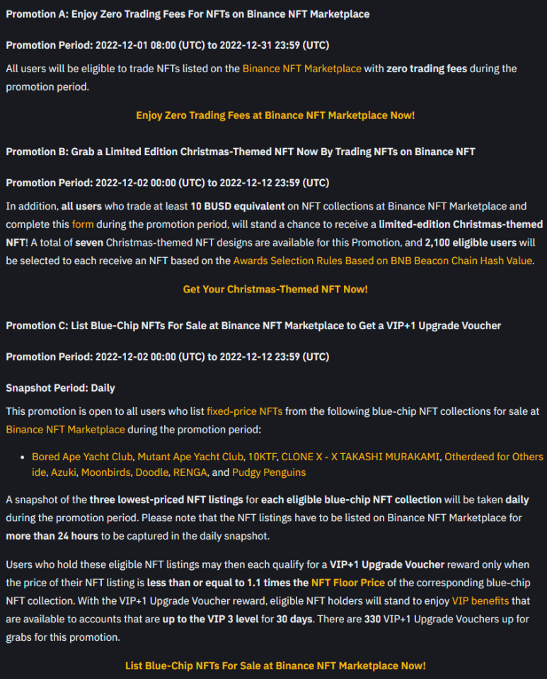 총상금 150만 달러 : 바이낸스 거래소 크리스마스 이벤트 + NFT 거래수수료 무료