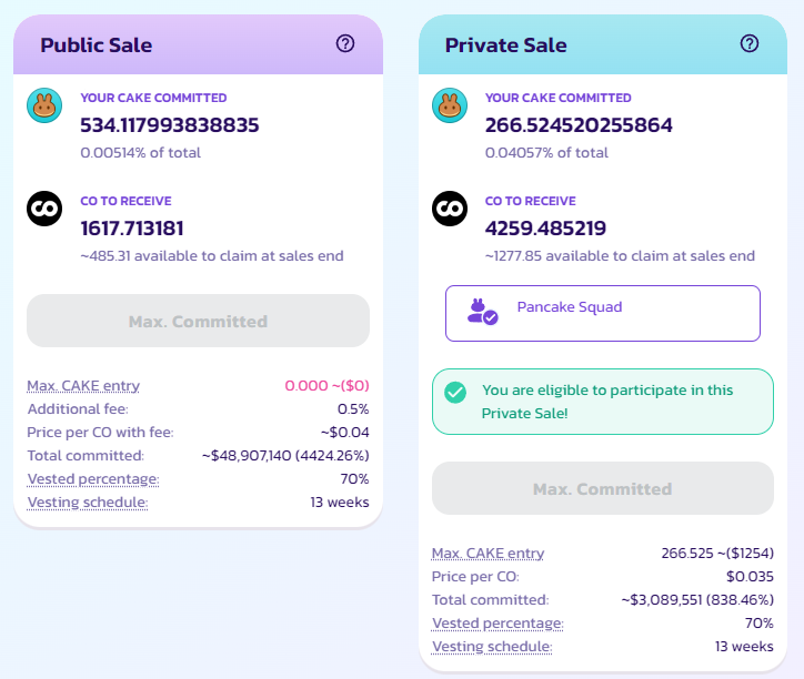 CAKE 스테이킹 숫자만큼 퍼블릭 세일 + 프라이빗 세일 참가 였는데