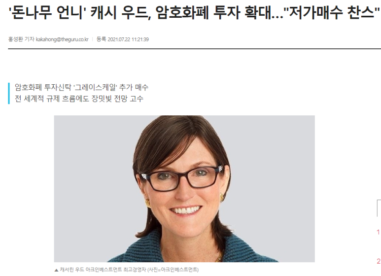 아크인베스트를 이끄는 캐시우드는 정말 비트코인을 믿는 사람이구나.