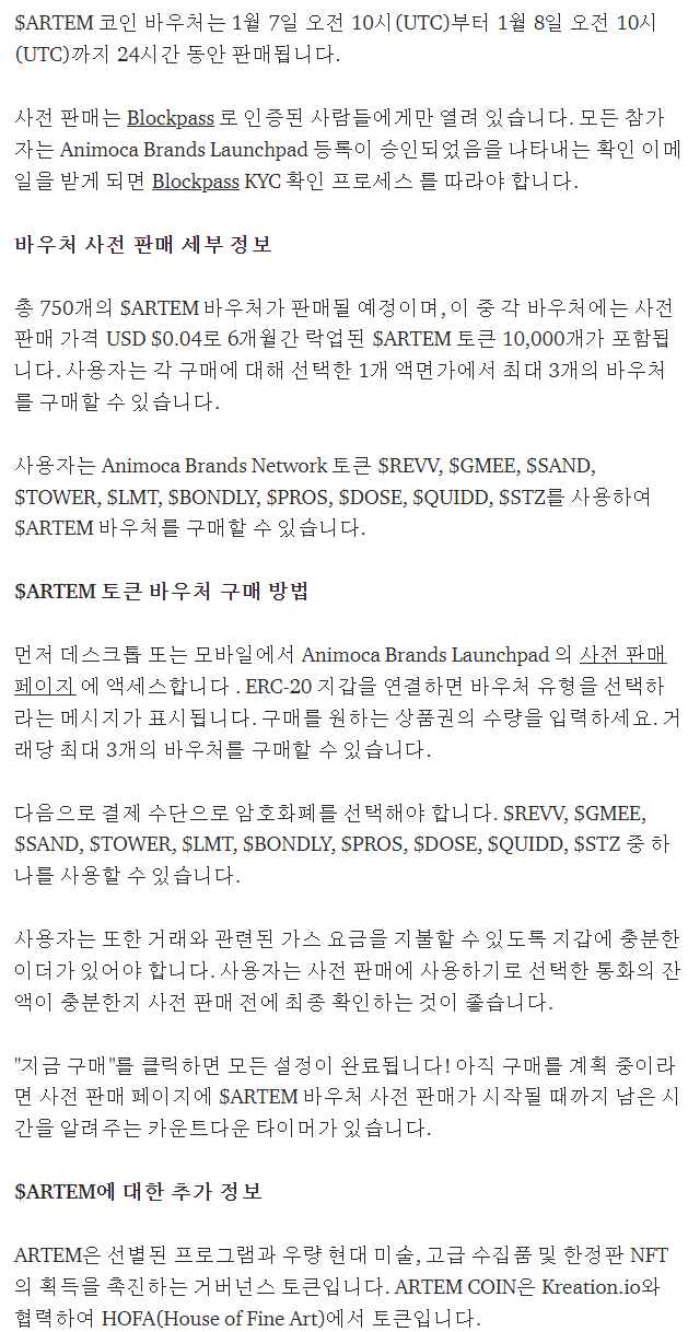 1바우처 가격 = 400 달러 = 0.04달러 × 1만개 ARTEM