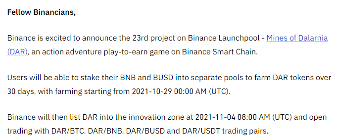 바이낸스 신규 런치풀 달라니아(DAR) 참여방법?