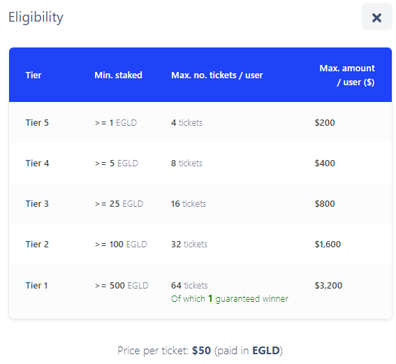 엘론드(EGLD) 보유에 따른 티어등급은 이전과 비교해 달라진 것은 없으나,