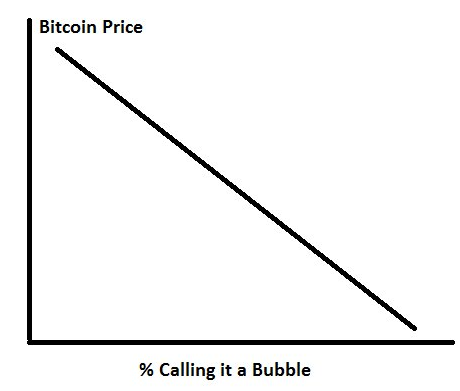 언뜻 직관적이지 않지만, 만일 심리학을 고려한다면 어느 정도 일리가 있다. 즉, 비트코인의 가격이 상승할수록, 더 많은 관심을 받게 되고, 채택도 더 많아지기 때문이다. 만일 내가 어떤 것을 갖고 있거나, 가질 예정이거나, 주변에 누군가 그것을 가지고 있다면, 그것의 가격을 거품이라고 부르는 경향이 덜할 것이다. 그리고 따라서, 앞으로 몇 년 동안 비트코인이 계속 상승한다면, 거품이라고 여기는 사람들도 점점 더 줄어들 수 있다.