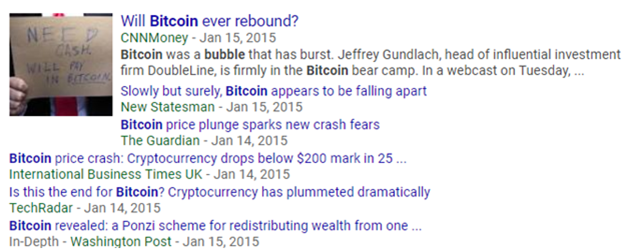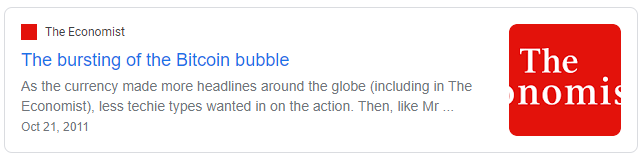 그리고 언론의 보도가 맞는 모습이다. 비트코인은 94% 폭락했고, 이후 이코노미스트는 "비트코인의 상승은 투기 거품의 결과물이었다."라고 보도했다.