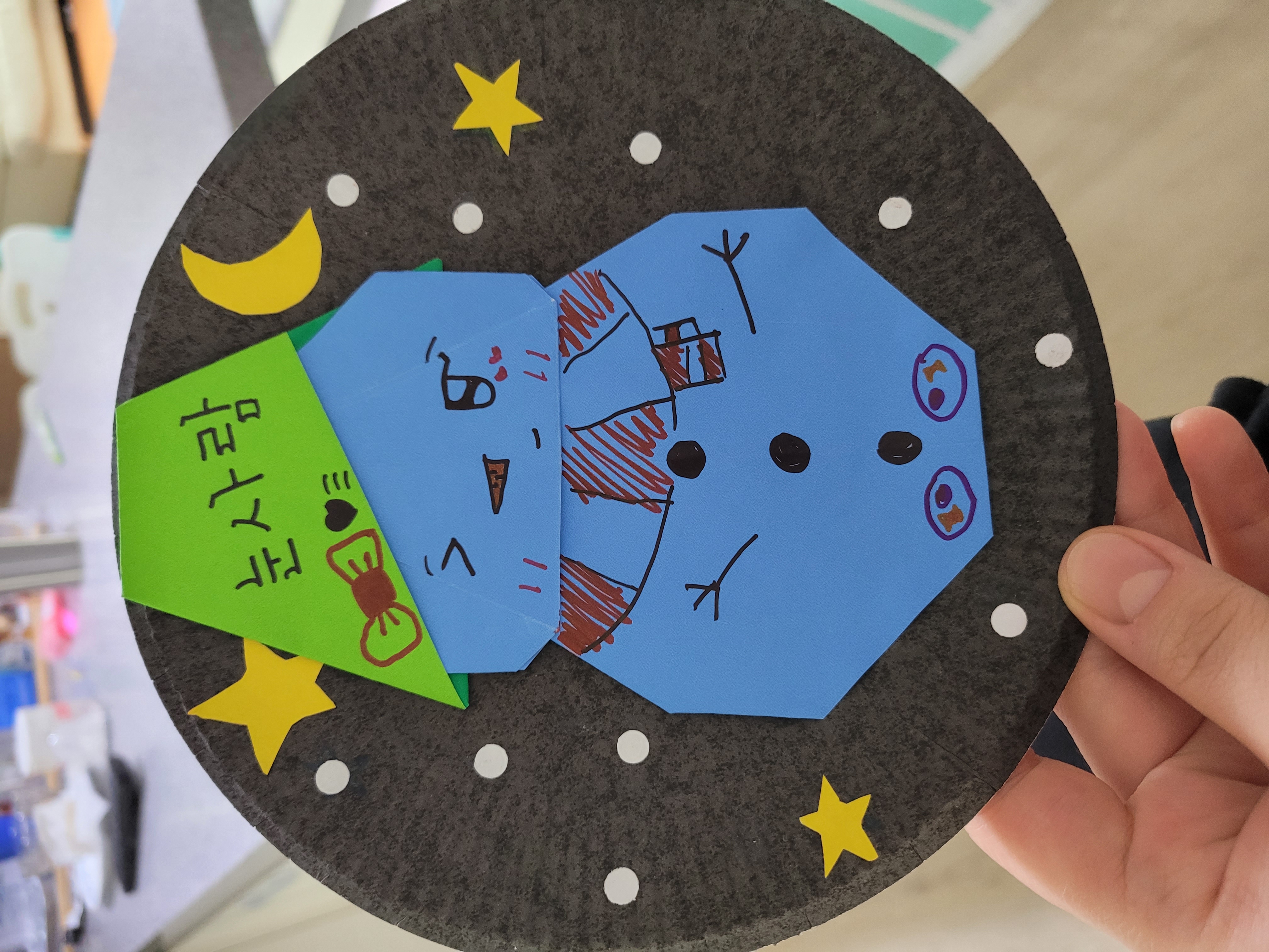 큰아이가 온라인 수업시간에 종이접기를 했다며 보여줍니다^^