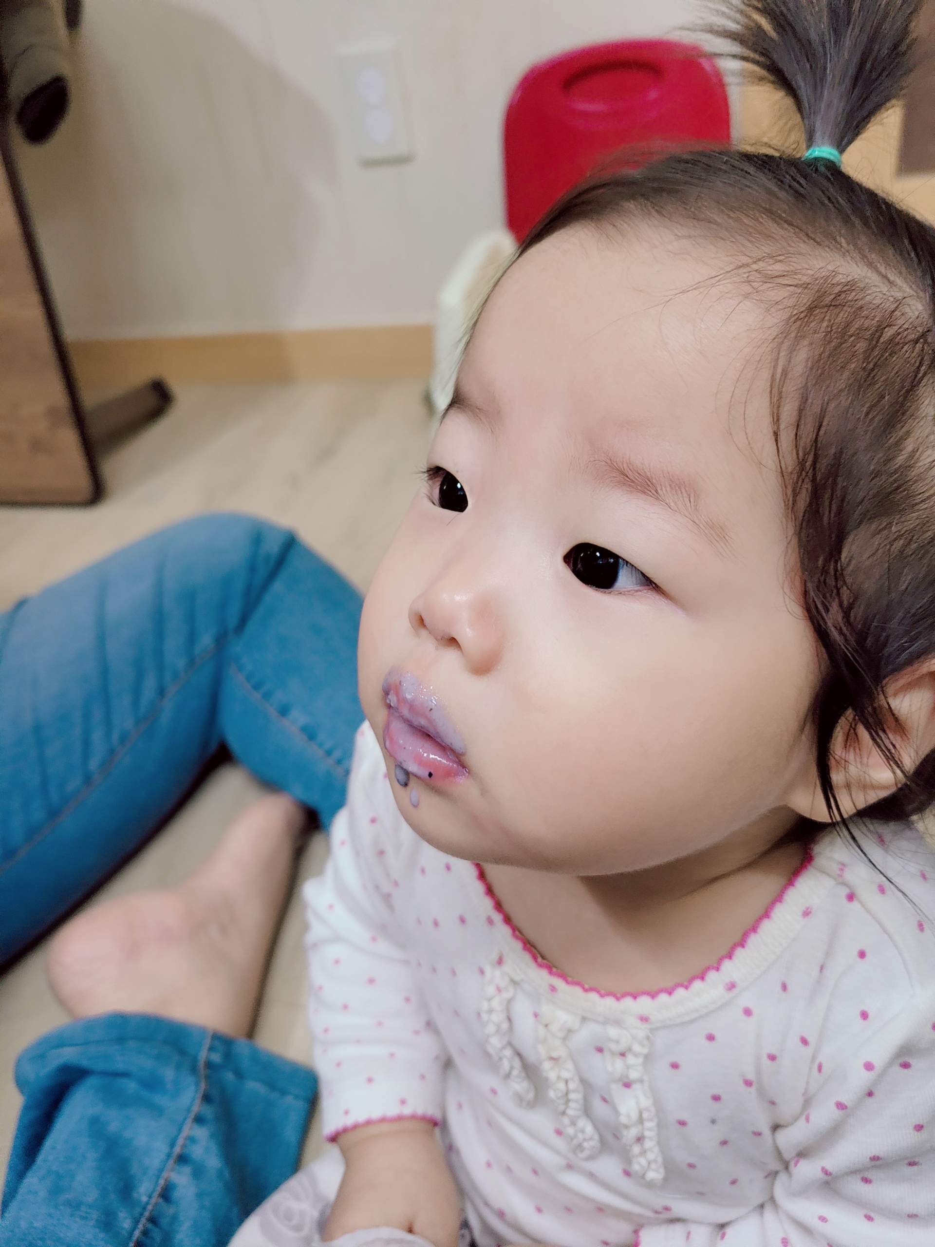 어젠 바나나가 들어가서그런지 달콤하게 잘먹어주더니 블루베리가 덜달콤했는지 먹다 장난을 치고 마네요.