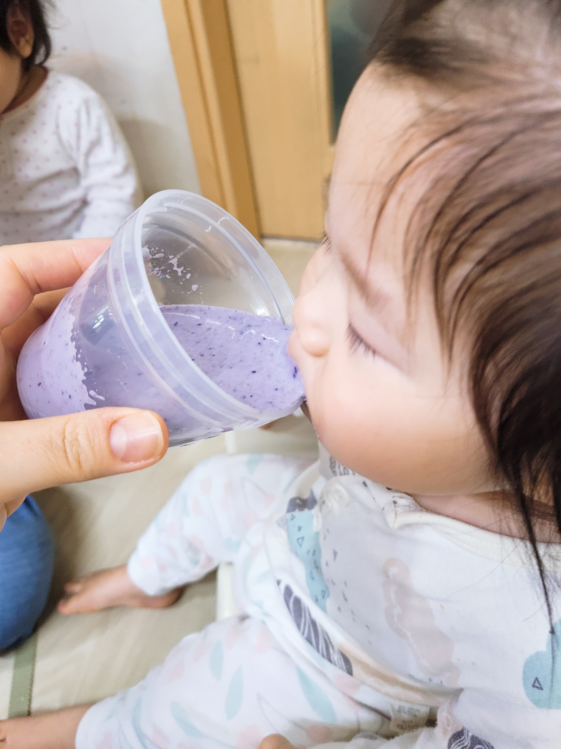 오늘은 쌍둥이 간식으로 블루베리오트밀포리지를 해주었어요.