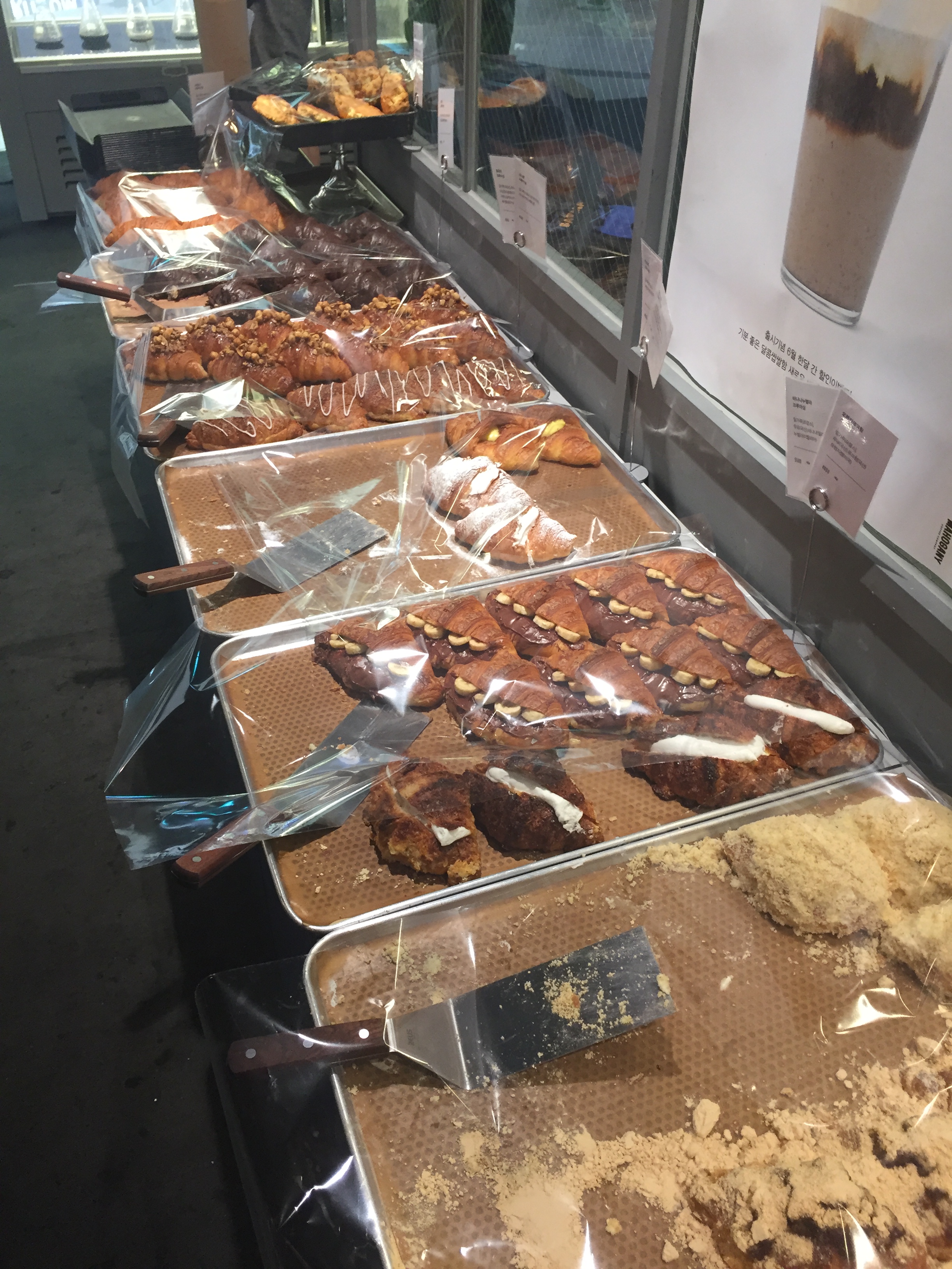 초코가 듬뿍 발라진 크로아상도 있고 많은 종류의 빵이..