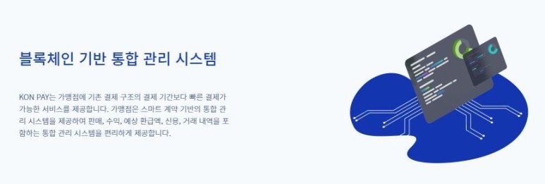 이밖에도 KON PAY는 스마트 컨트랙 기반 통합 관리 시스템을 제공해 가맹점들이 수시로 자신의 거래 내역을