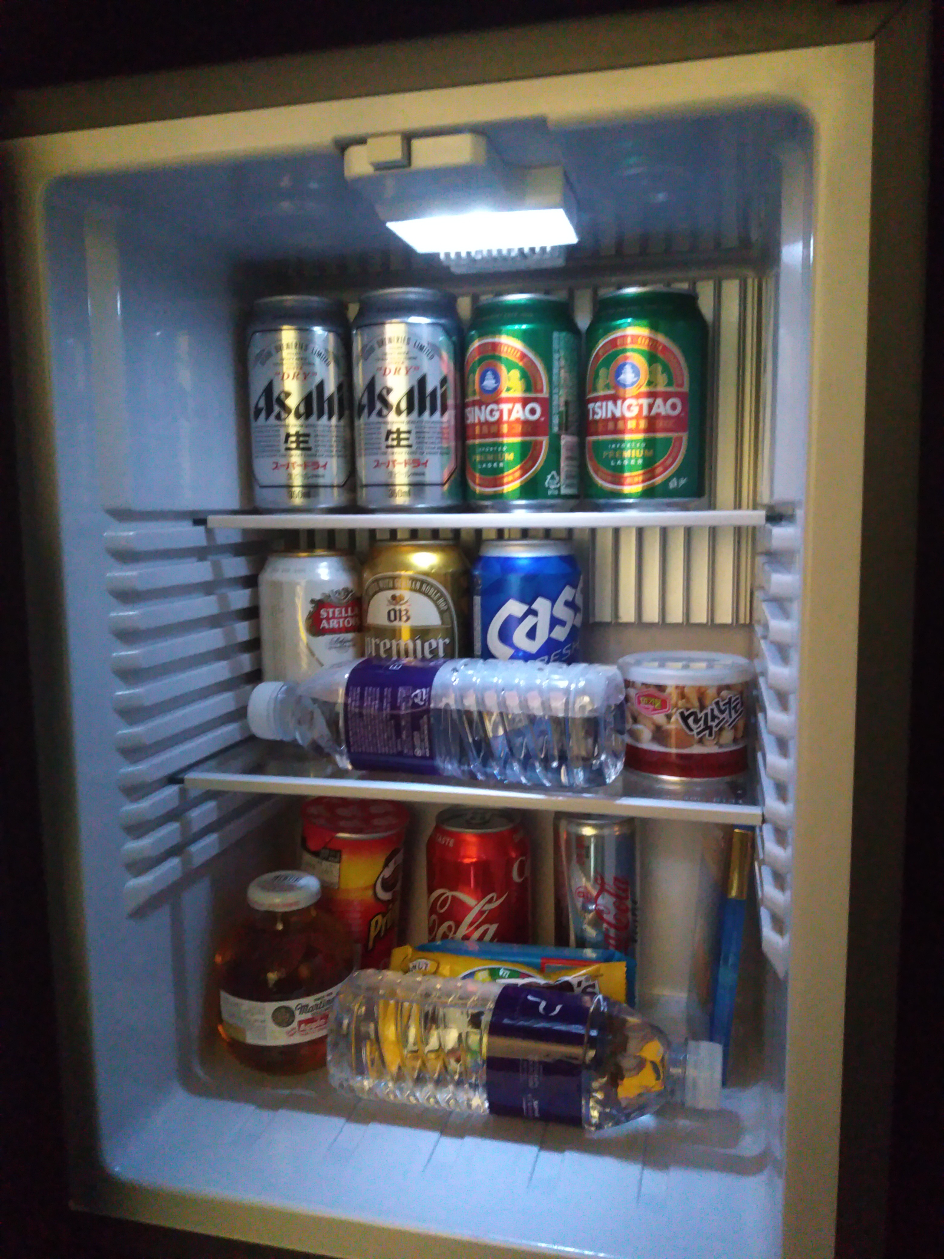 실내 물은 미지근하여 냉장고를 열어 쥬스를 반쯤 먹다 넣어놓고..구경하다가 칭다오를 오픈했습니다.