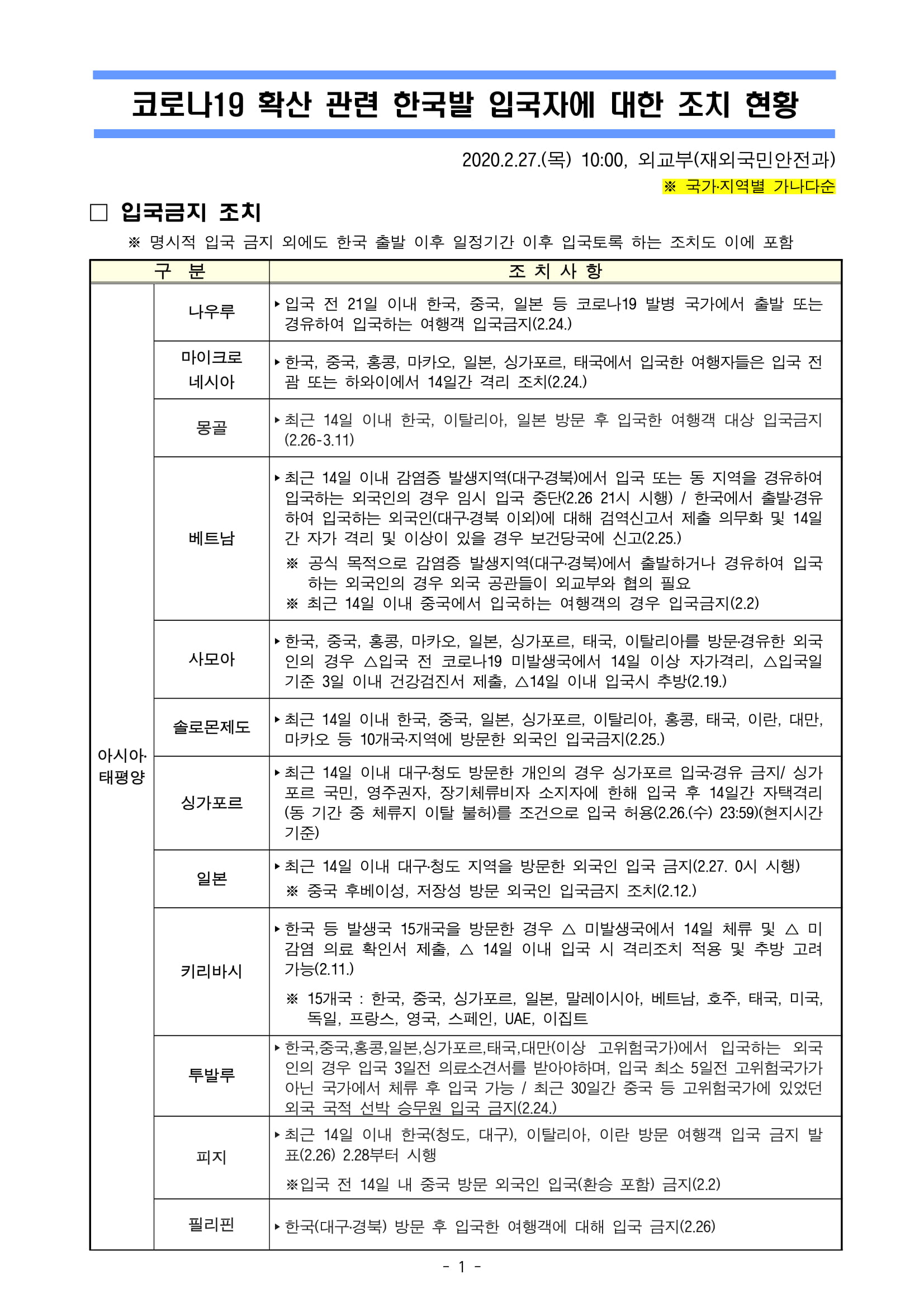 외교부 공지 - 코로나19로 인한 출입국 관련tournlife (25)in #kor • 6 years ago 코로나19로 인해 한국에서 출발하는 사람들에 대한 각국의 공지가 계속 뜨고 있습니다. 빨리 종식되길..ㅜㅠ