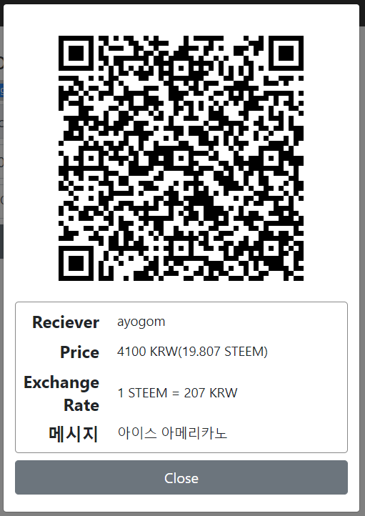 판매자는 이렇게 만들어진 QR코드를 구매자에게 보여주게 됩니다.