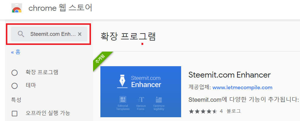 크롬 웹스토어 에서 검색어에