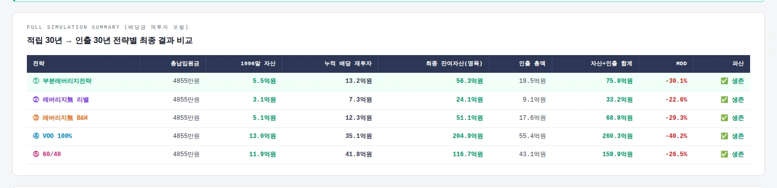 30년 적립 후 30년 인출 후의 최종 자산 그래프와 테이블이 표시되게끔 수정했습니다.